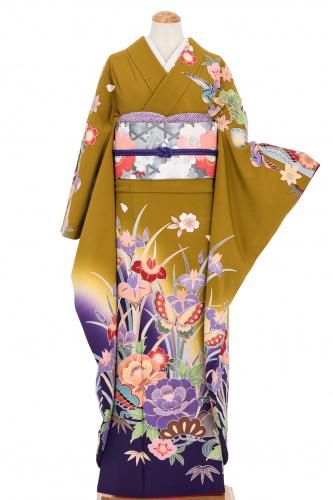 振袖 マゼンタ 金彩雲取りに四季の花 裄長