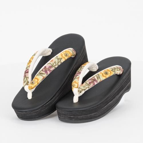 【F】新品 インド刺繍鼻緒 EVA草履 黄花×黒台