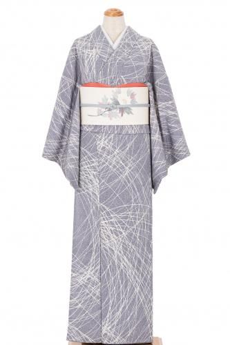 紬 訪問着 猫と蝶々 作家物 スリムサイズ