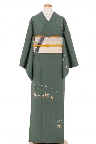 色無地 一つ紋 若葉色 ゆったりサイズ 裄長