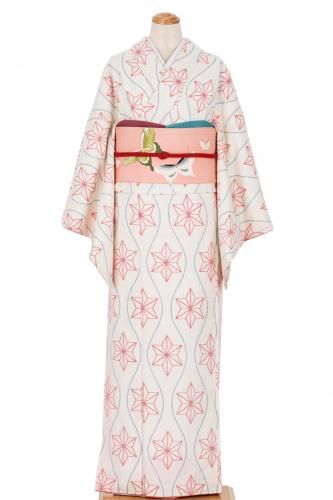 縮緬 一つ紋 唐花模様 ゆったりサイズ