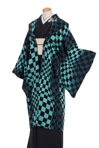 【売り切れ】 フード付き長羽織 変わり市松 裄長
