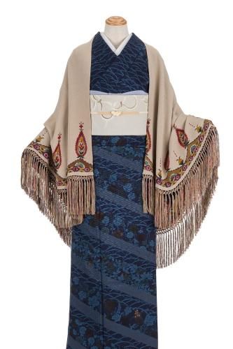 【売り切れ】 ショール付き道中着 無地 辛子色