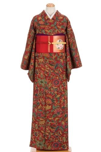 【売り切れ】 臙脂色 更紗模様 花と鳥