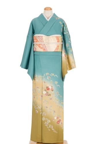 【売り切れ】 訪問着 翡翠色 花模様