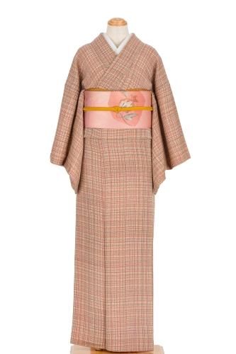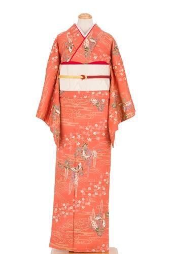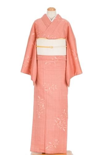 【売り切れ】 単衣 紬 浅緋色地 草花模様