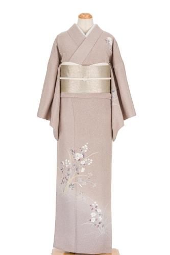 【売り切れ】 単衣 色無地 一つ紋 茶鼠 ゆったりサイズ 裄長