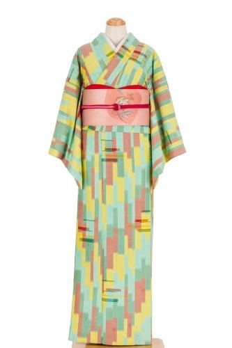 【売り切れ】 単衣 紬 ミントグリーン 幾何学模様