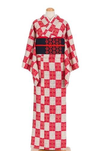 【売り切れ】 ベージュ地 縮緬 紐格子模様
