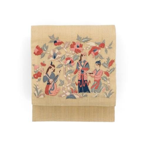 【売り切れ】 夏帯 紗 刺繍 花と人