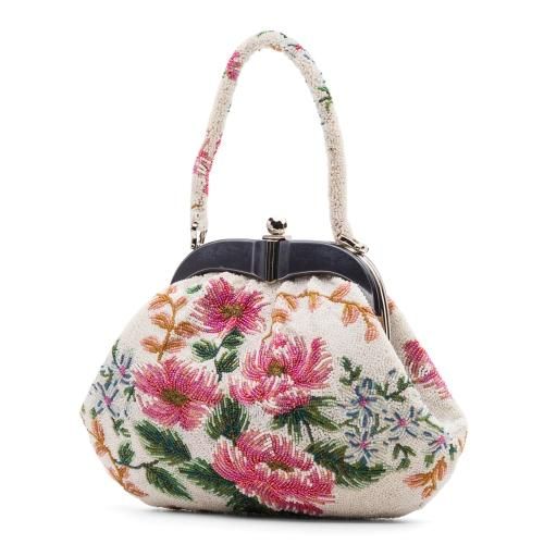 【売り切れ】 ヴィンテージビーズバッグ 白地 花