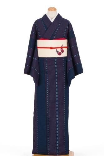 【売り切れ】 紬 紺地 絣と縞模様