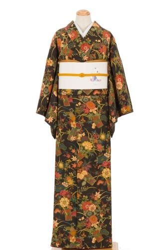 【売り切れ】 縮緬 黒檀色 花束模様 スリムサイズ