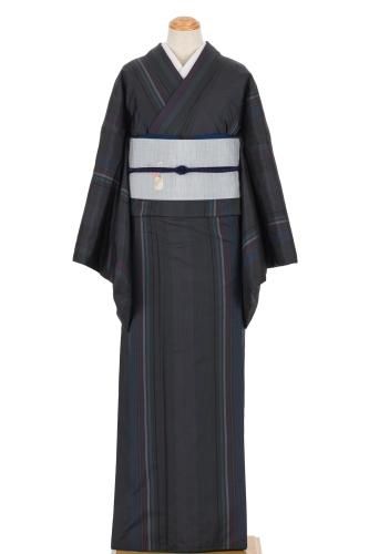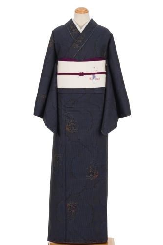 【売り切れ】 大島紬 藤絹織物 紺地 縞模様 裄長