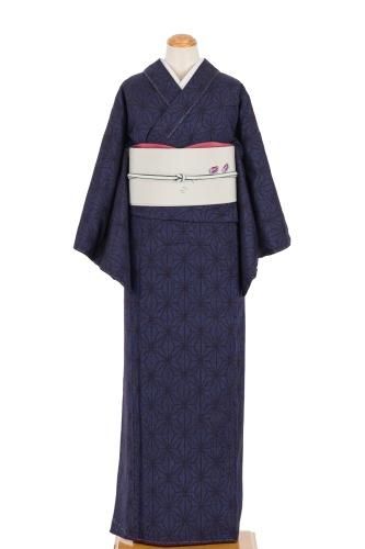 【売り切れ】 紬 紺地に麻の葉模様 ゆったりサイズ