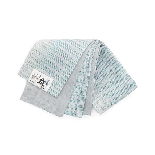 【売り切れ】 新品 半幅帯 麻 横段 青緑