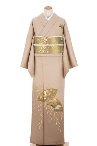 【売り切れ】 訪問着 一つ紋 金の柳と地紙模様