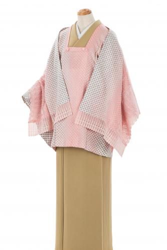 【売り切れ】 ショール付き道行コート 総絞り ピンク ドット柄
