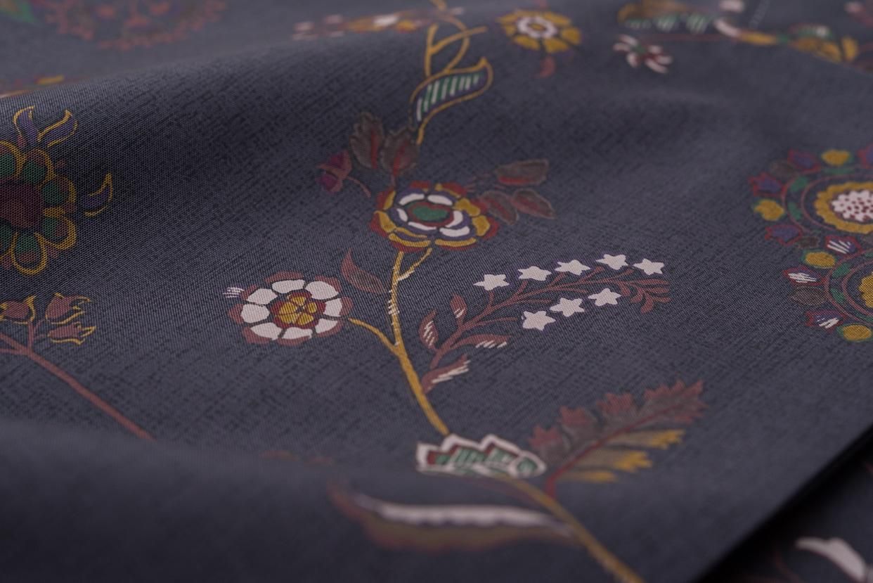 裾に向けて段々と柄の密度が高くなる大変華やかなデザインです。