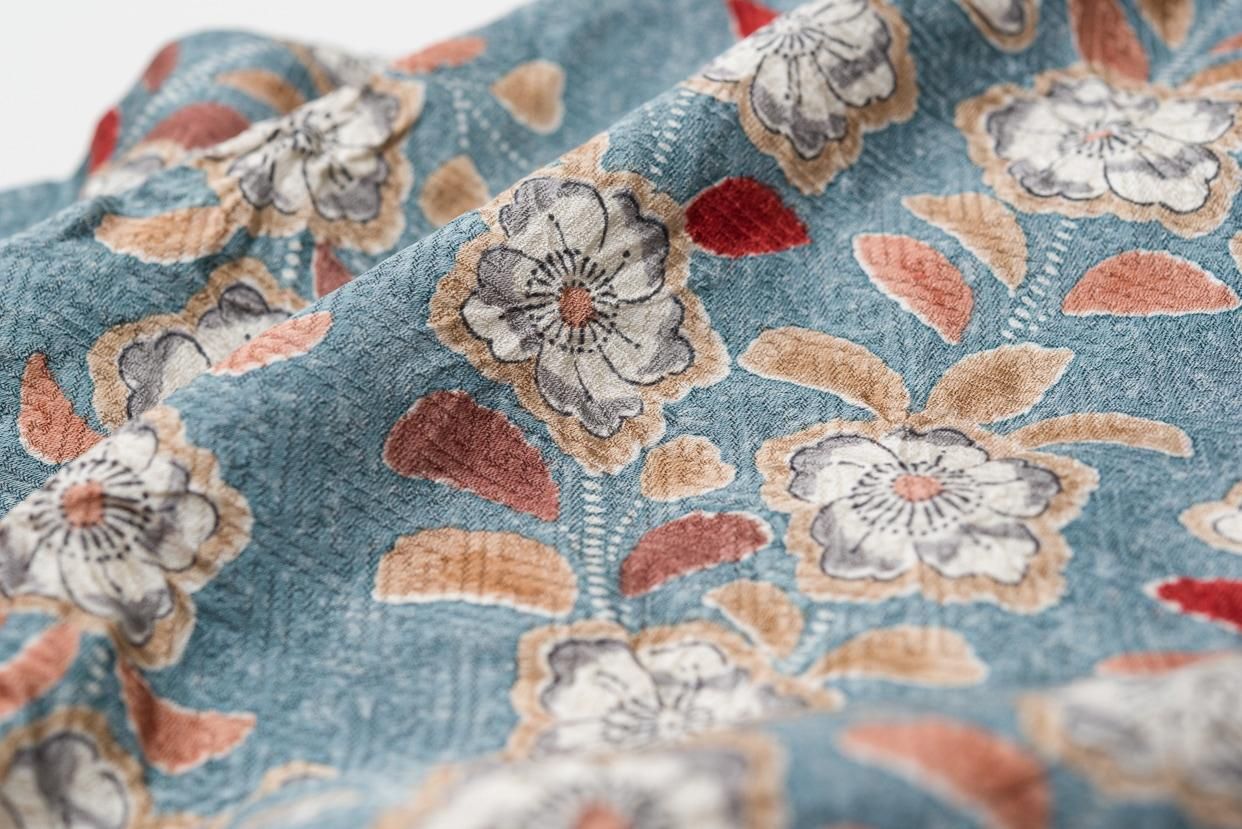 白基調の柄は緻密ながら透明感もあり、派手になりすぎません。