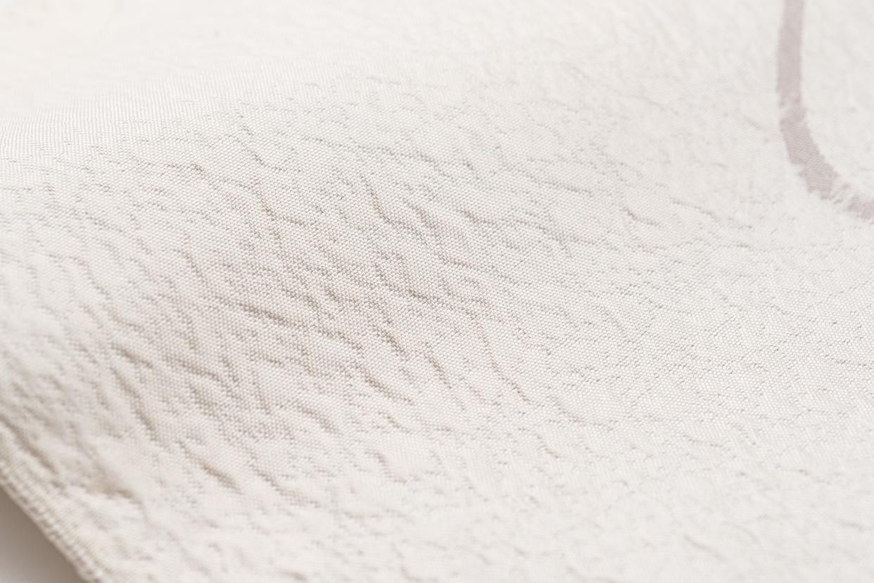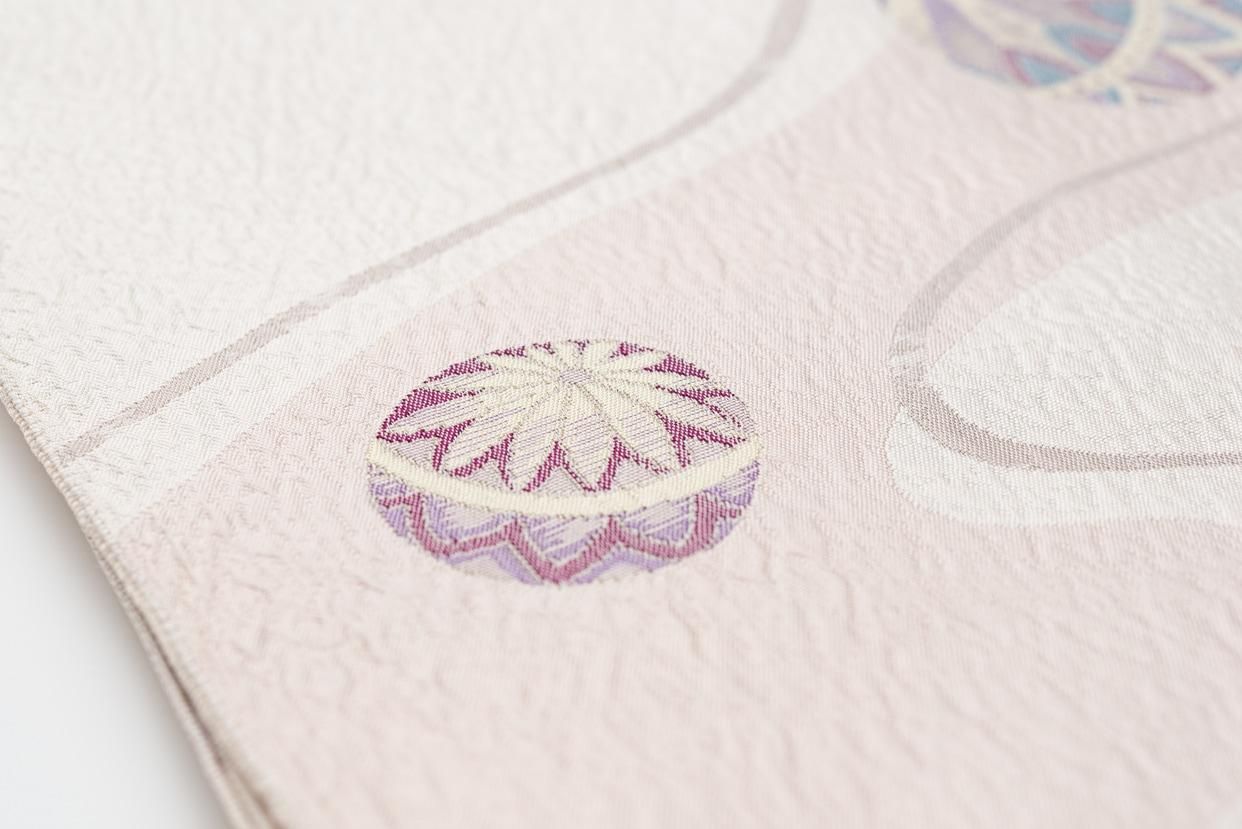 白地に鞠の柄を織り出した八寸名古屋帯です。