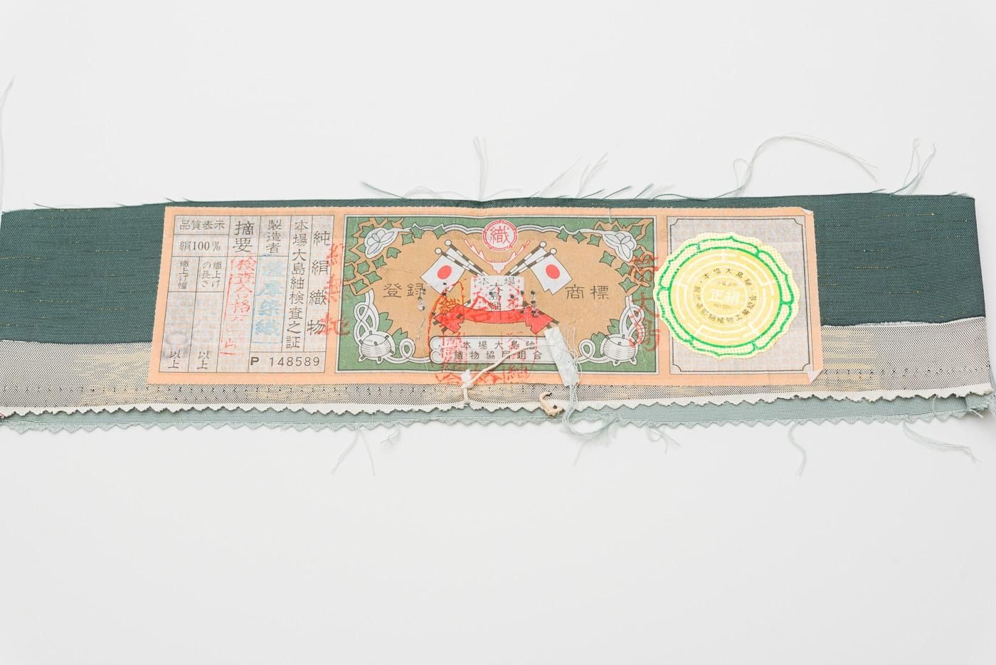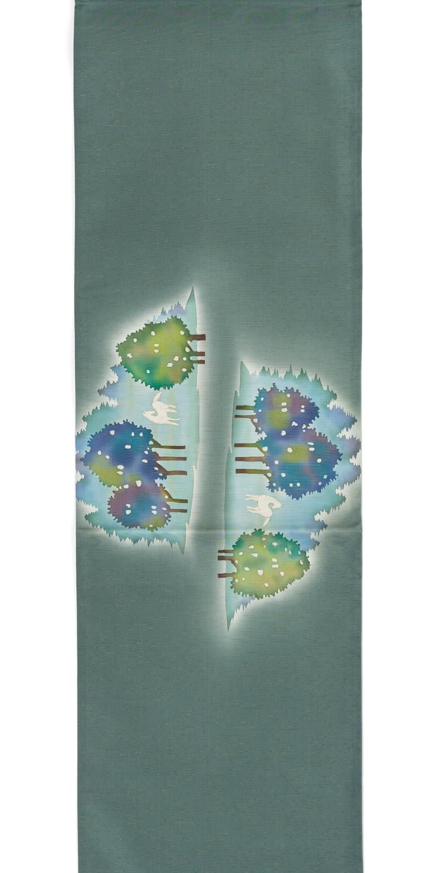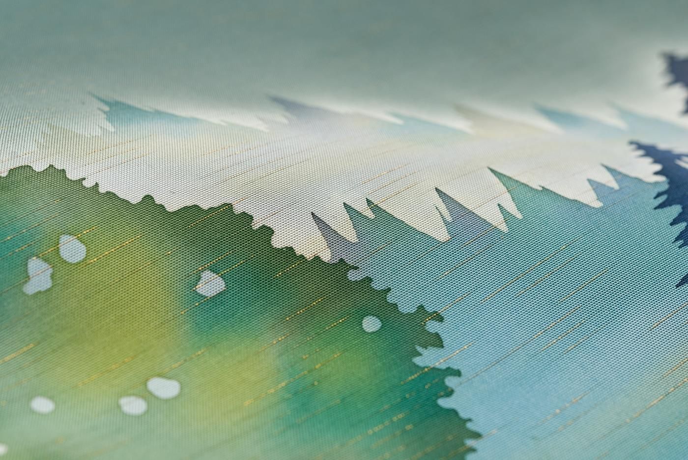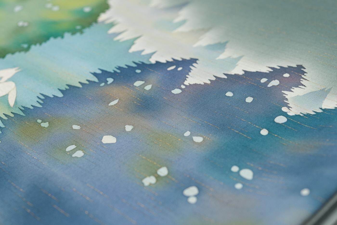 森の中に佇む白馬が美しい大島紬の袋帯です。
