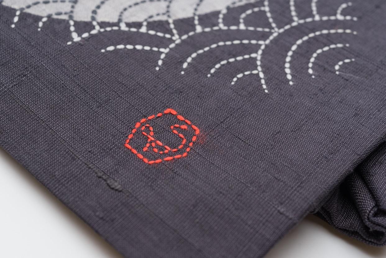 【売り切れ】 紬 日本刺し子 青海波 無匠庵