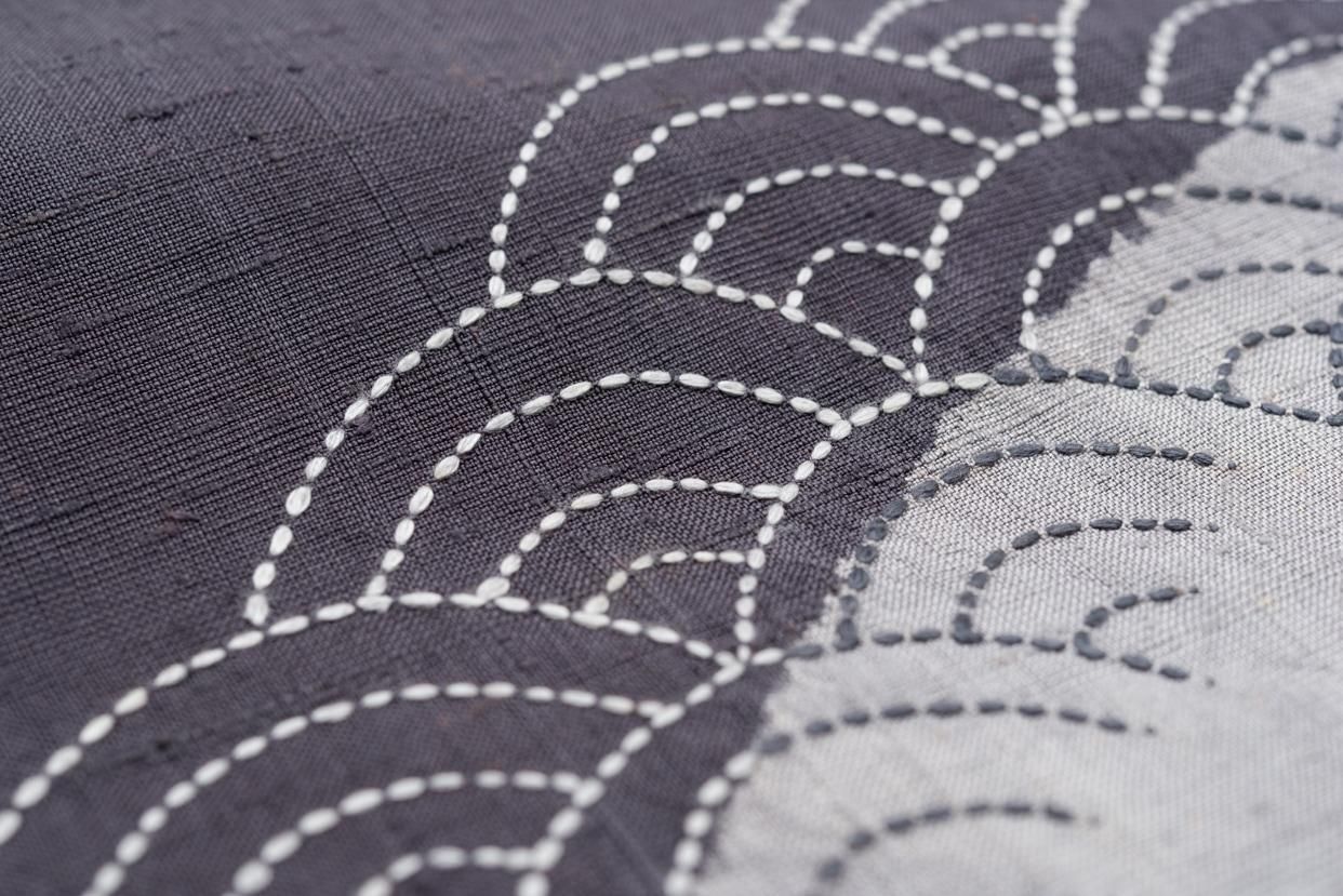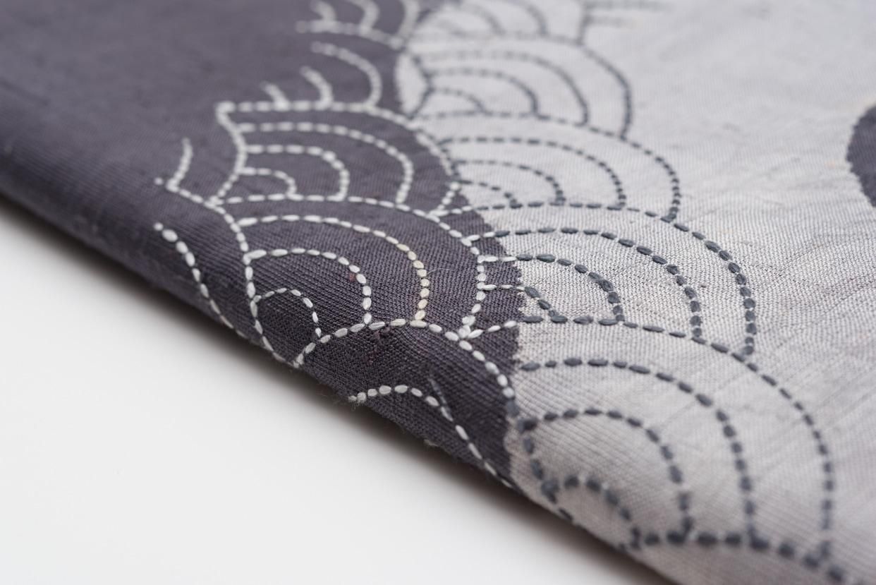 三日月のような曲線で地色が分かれますが、その地色に合わせて刺し子の糸の色もきちんと変わっていますね。