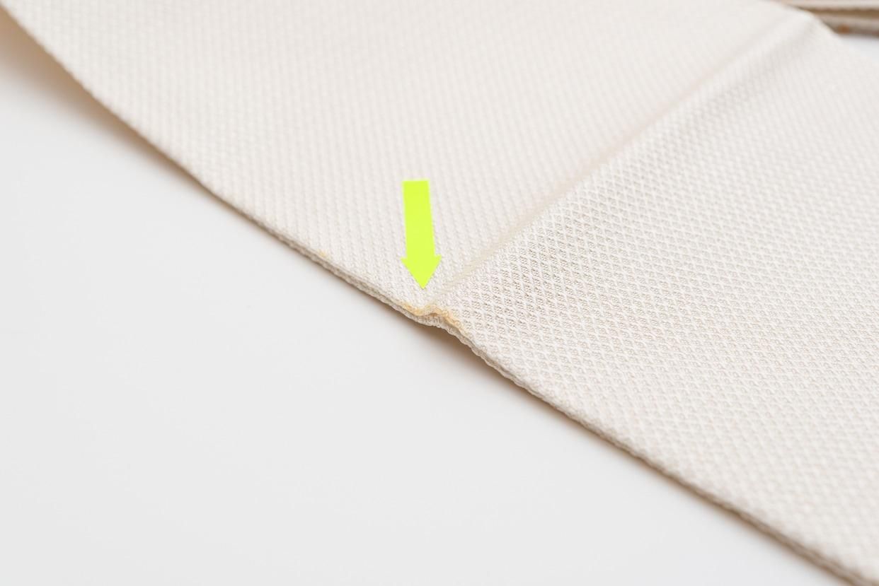 手先から約34cmの付近に画像のような染みがありますが、こちらは締めた際には隠れる場所です。