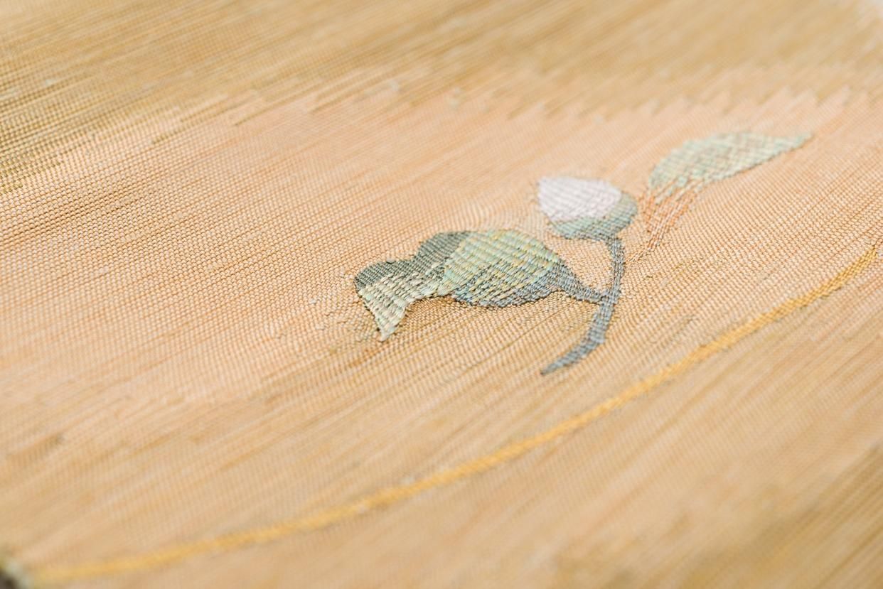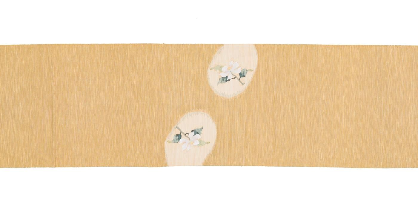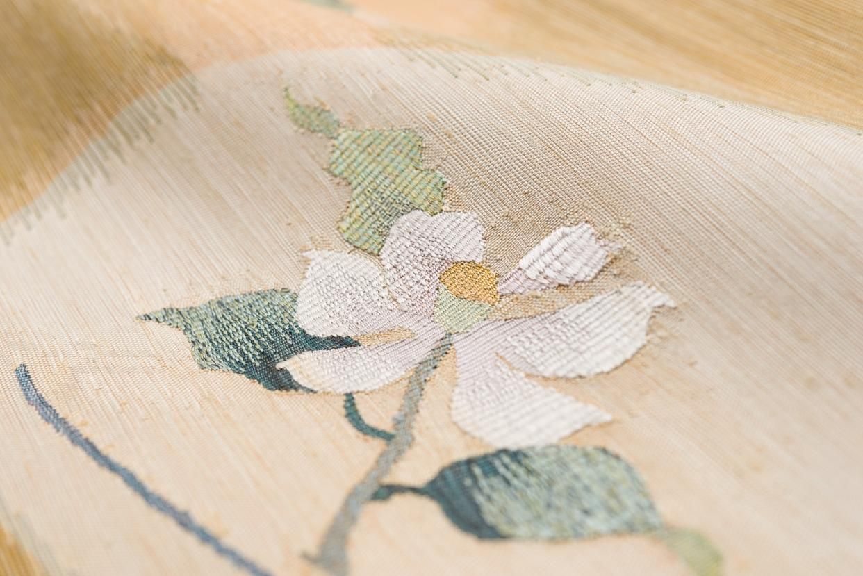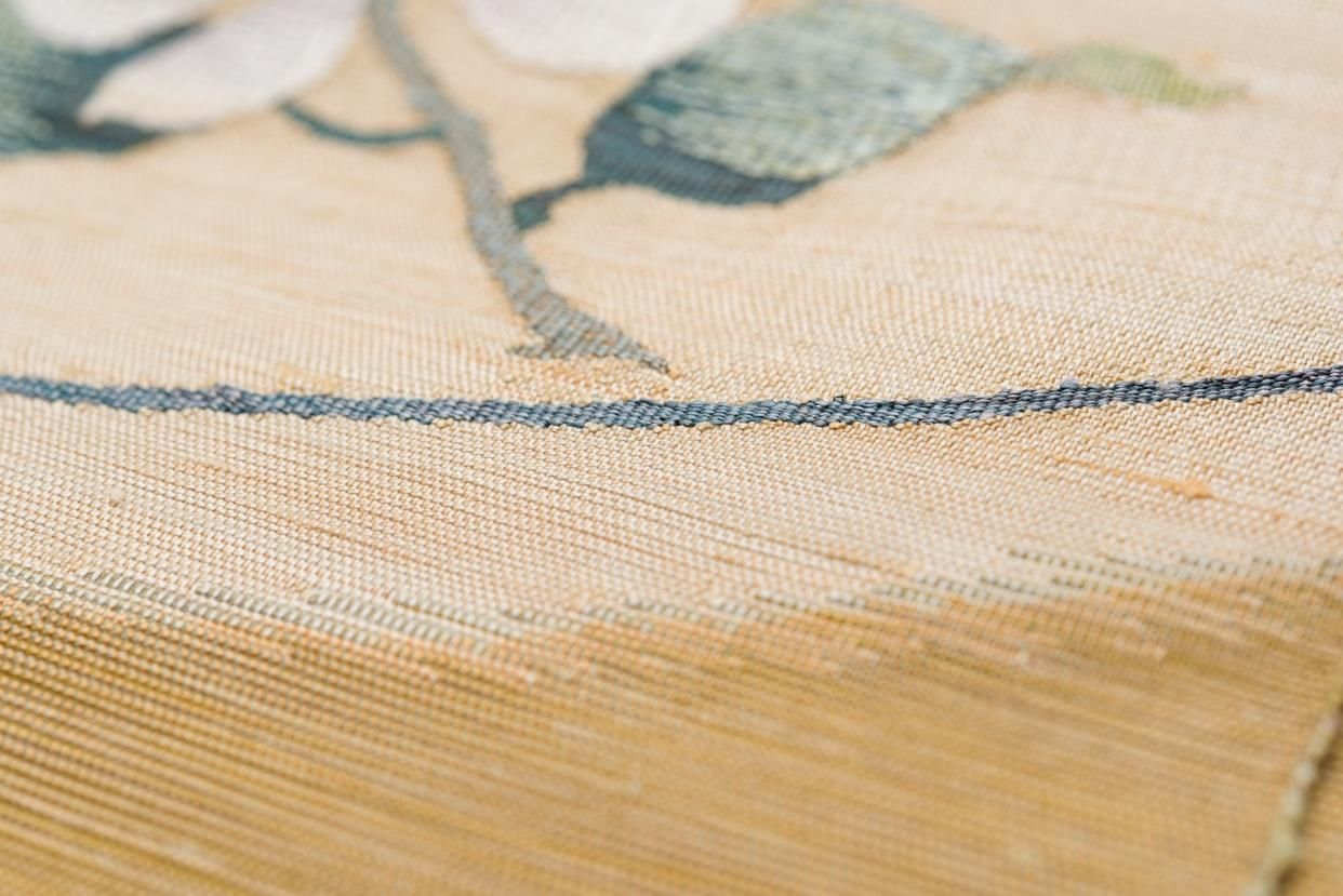 紬地に綴れの花が咲く八寸名古屋帯です。