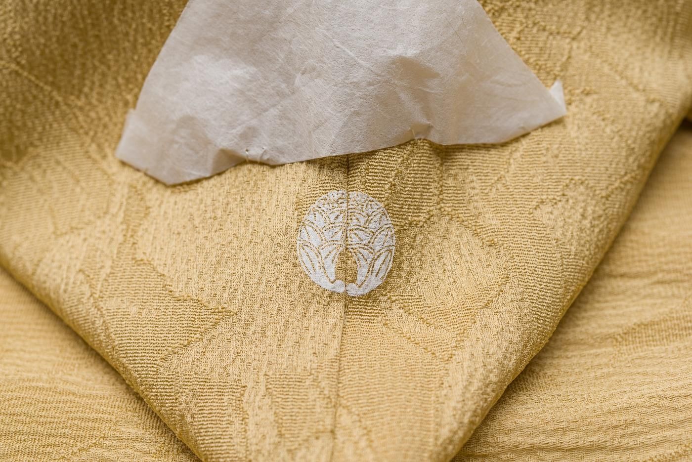 一つ紋入りのお仕立てとなっておりますので略礼装着としてお使いいただけます。