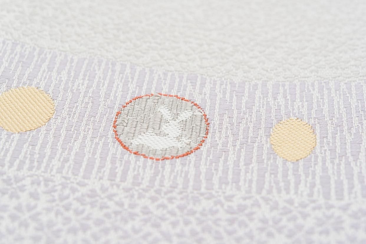 カジュアルな帯ですので紬、小紋、軽い付下げ、色無地などと合わせていただくと素敵です。