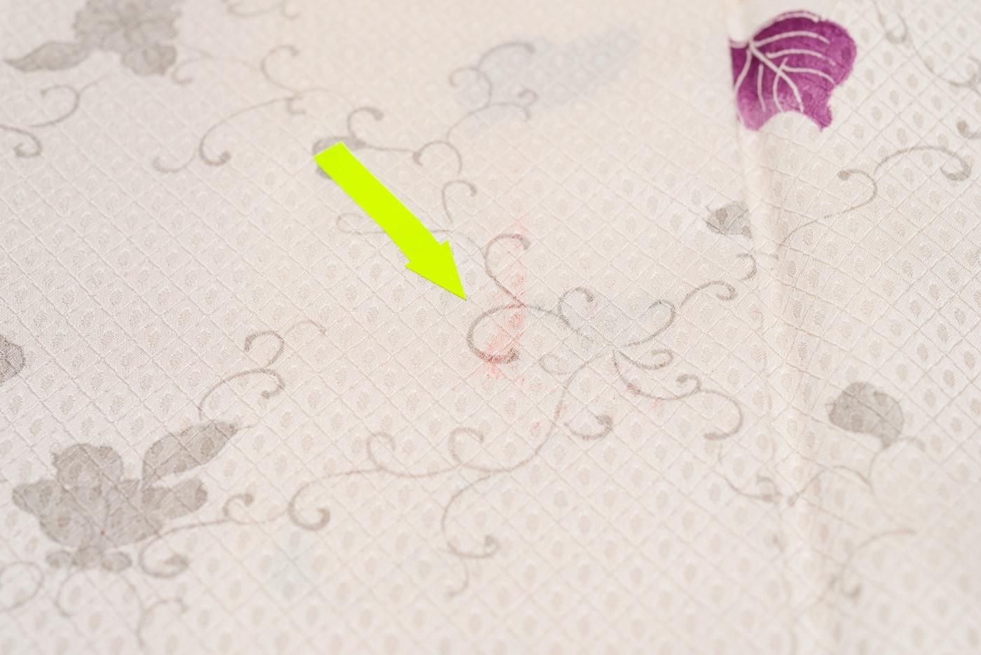 上前の裾上22cmの付近に染料の写りがあります。