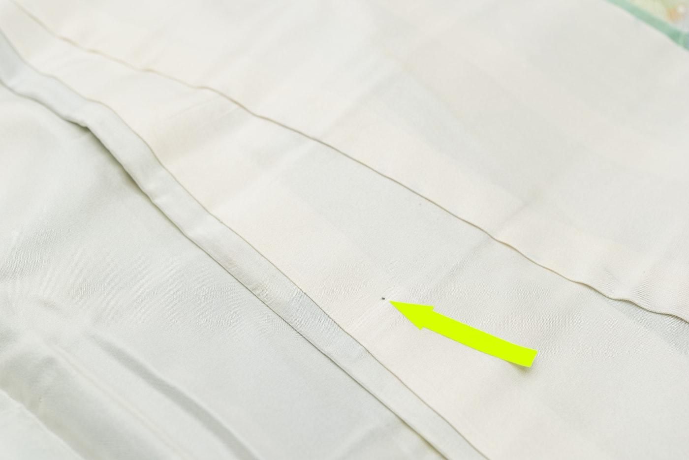 右後身頃の肩山下63cmに茶の小染みがあります。
