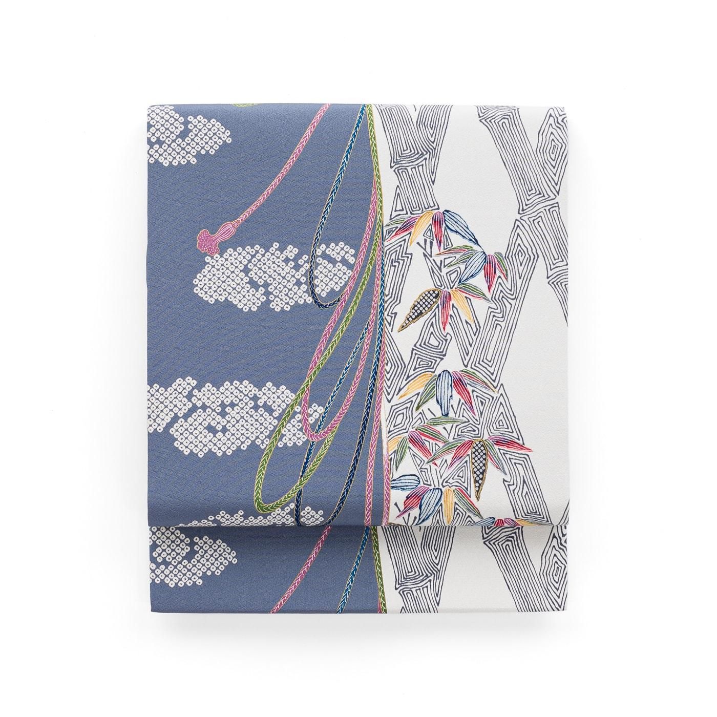 ツートンカラーの片側には雲、もう片側には笹を染めた九寸名古屋帯です。
