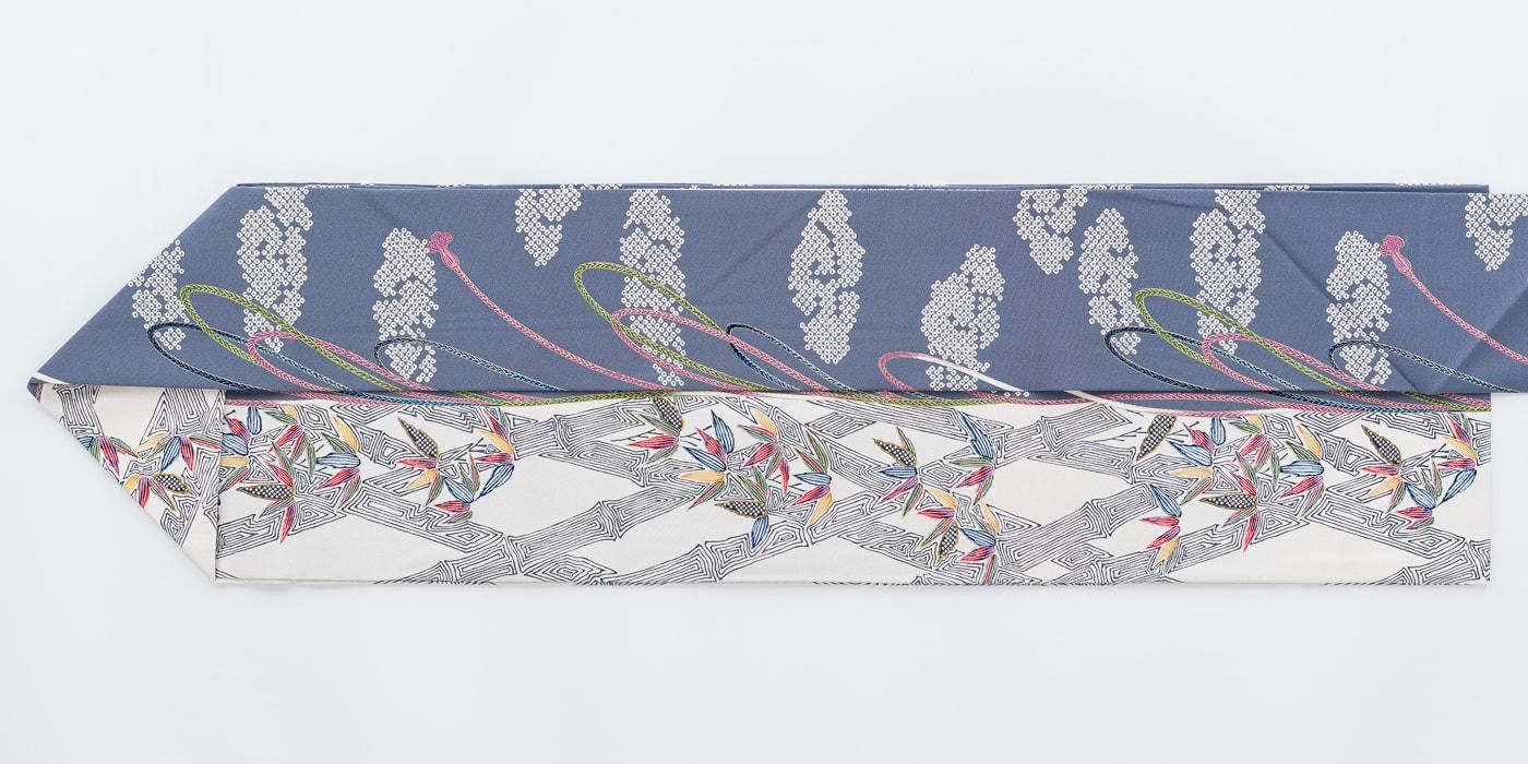 柄を区切るように配した組紐がゆったりたなびく姿も美しいですね。