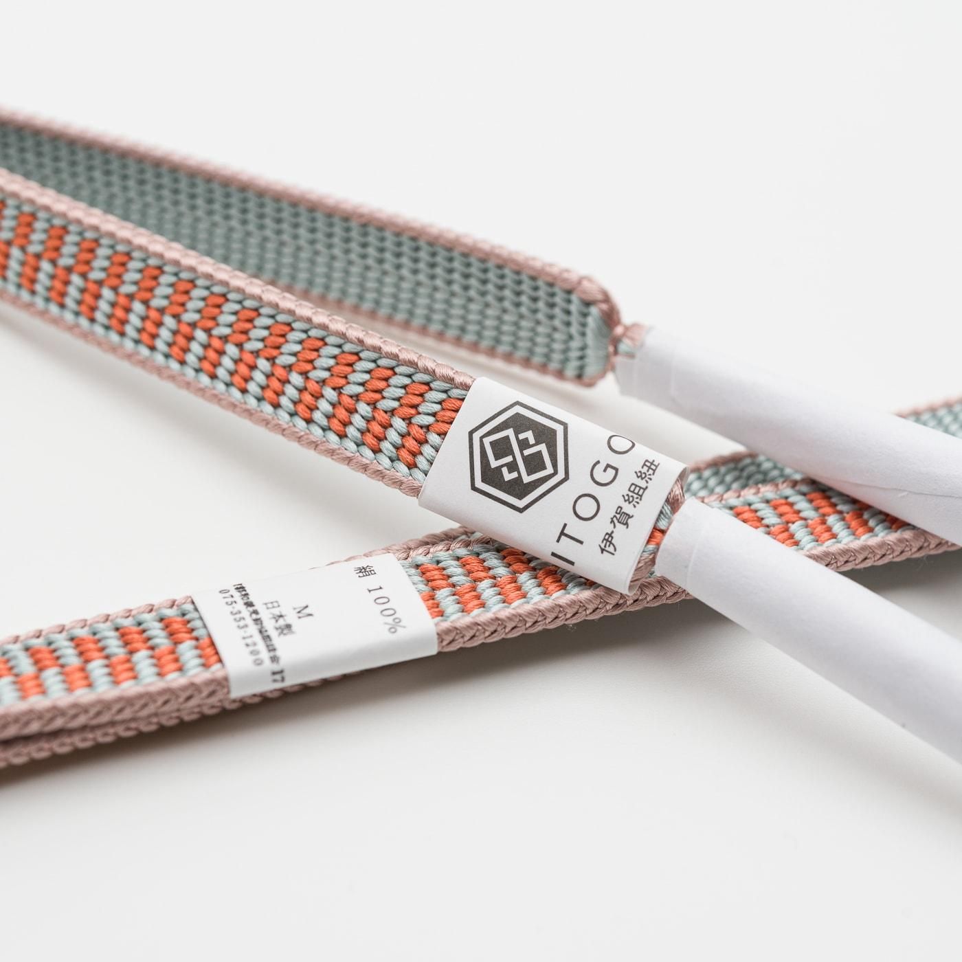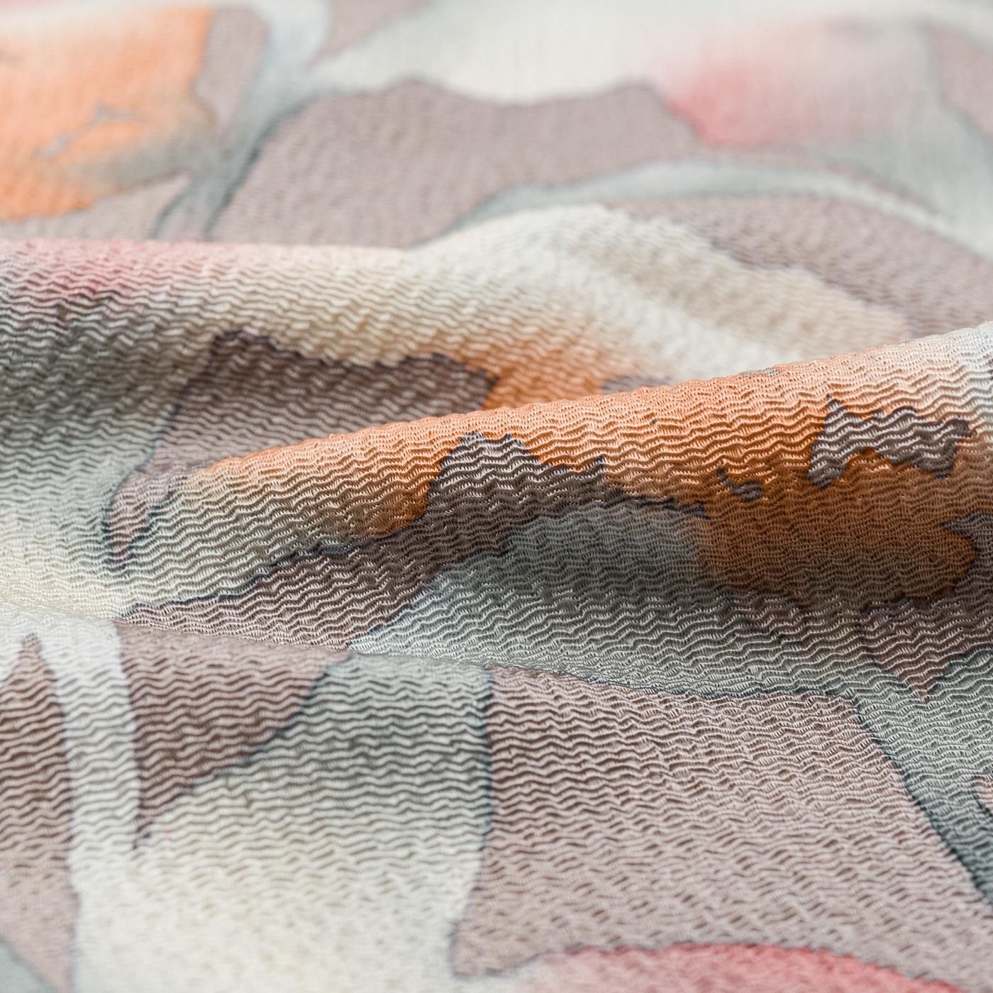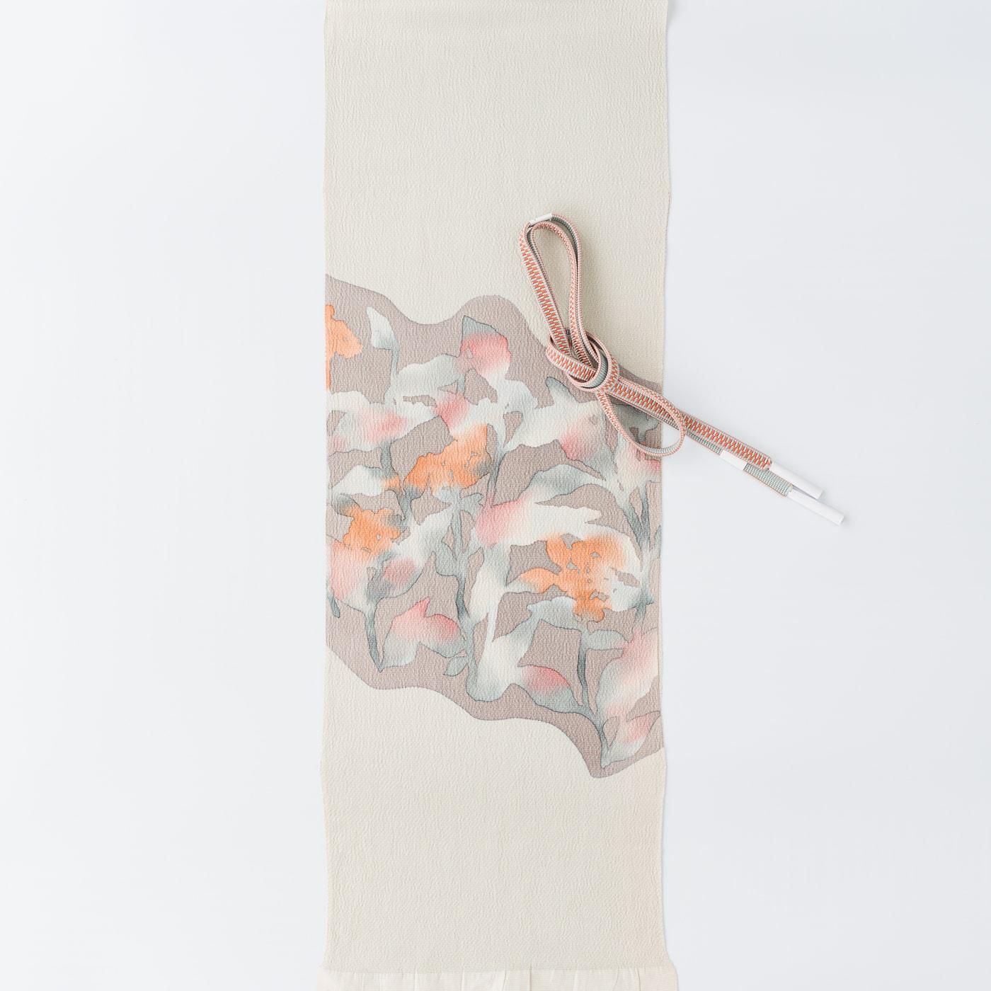 淡いグレーの縮緬地に水彩調の花柄を描いた帯揚げに、高品質のITOGO製伊賀組紐の帯締めを合わせました。