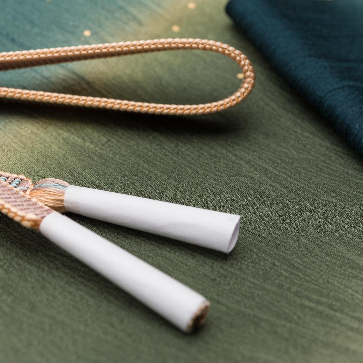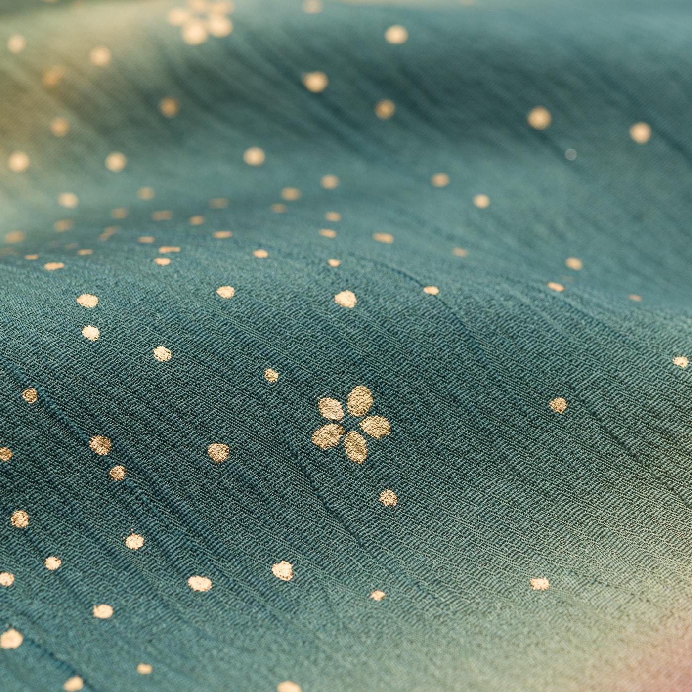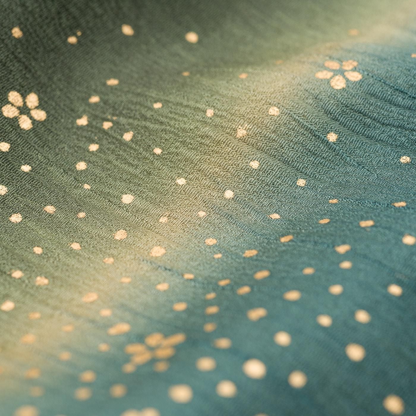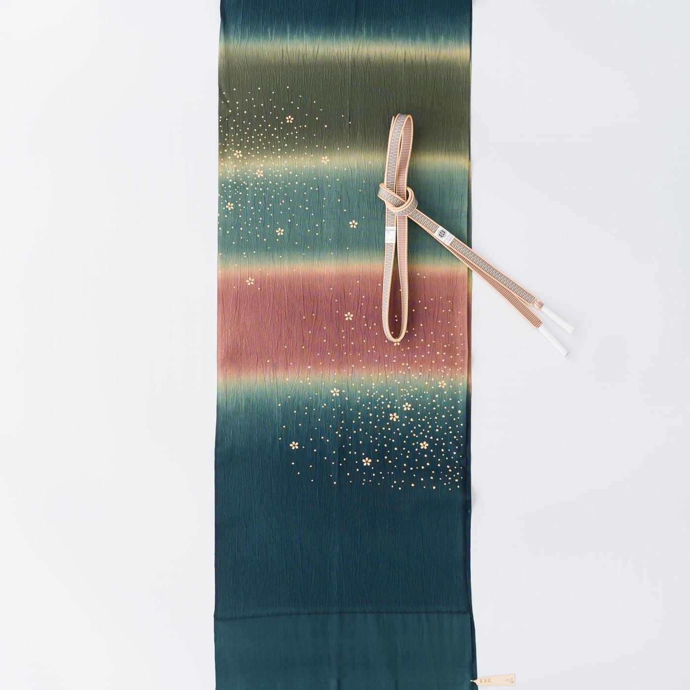 横段暈しに金の小花が映える帯揚げに、高品質のITOGO製伊賀組紐の帯締めを合わせました。
