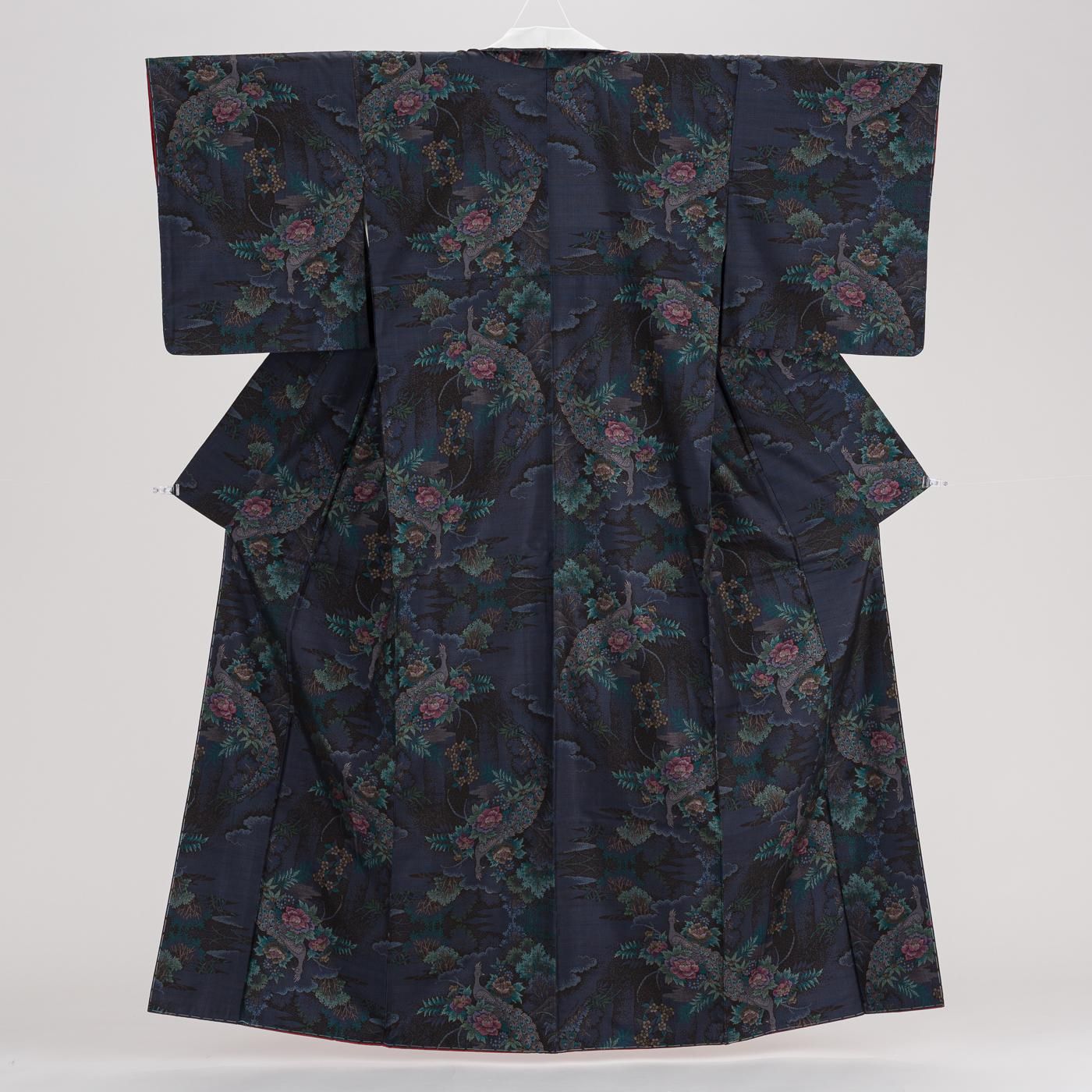 孔雀の周りには大輪の牡丹や可憐な菊などが色鮮やかに咲いています。
