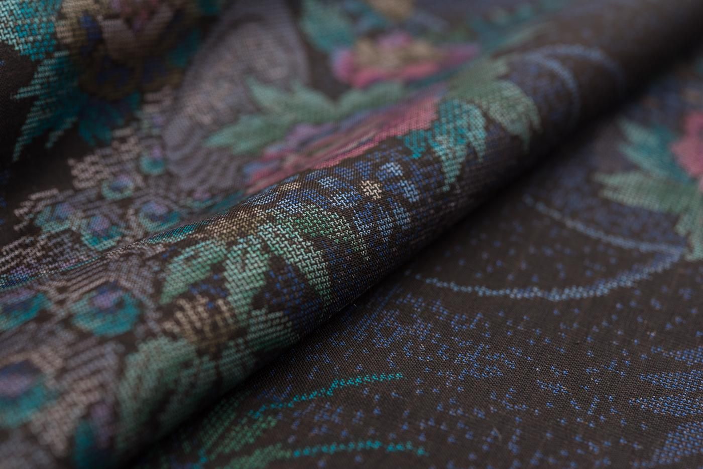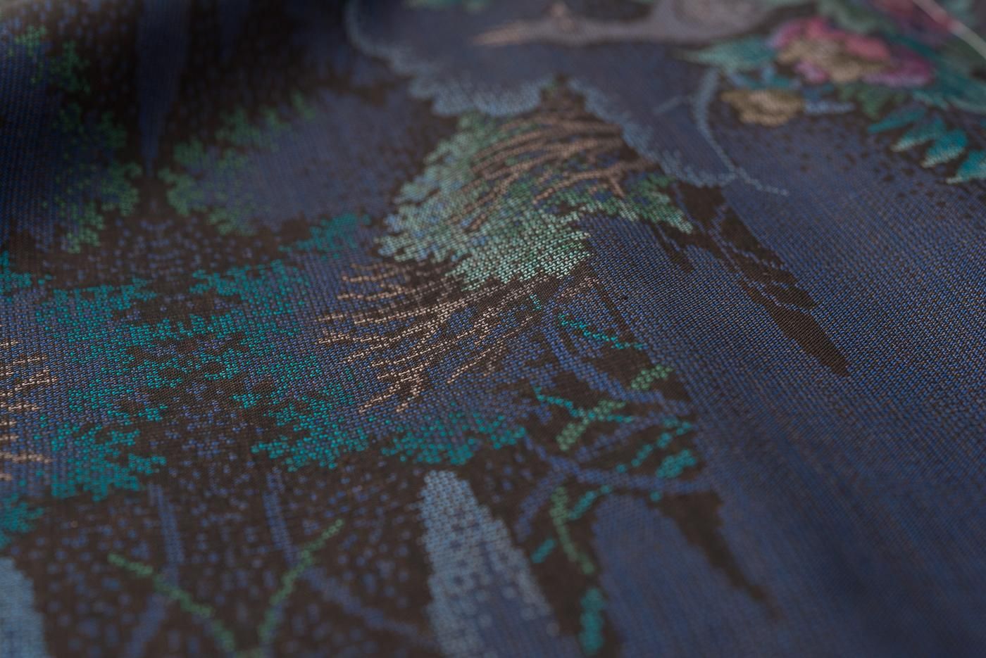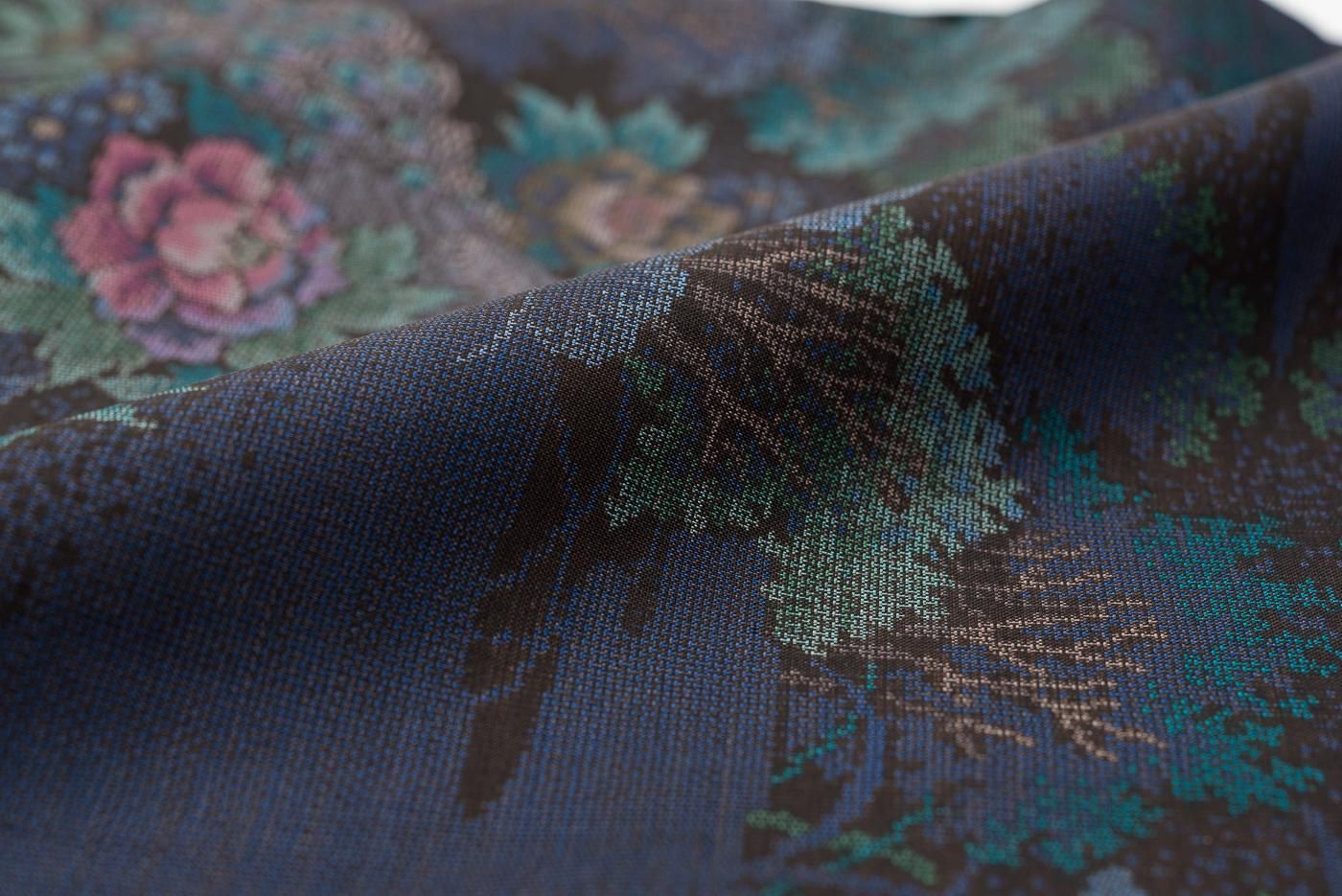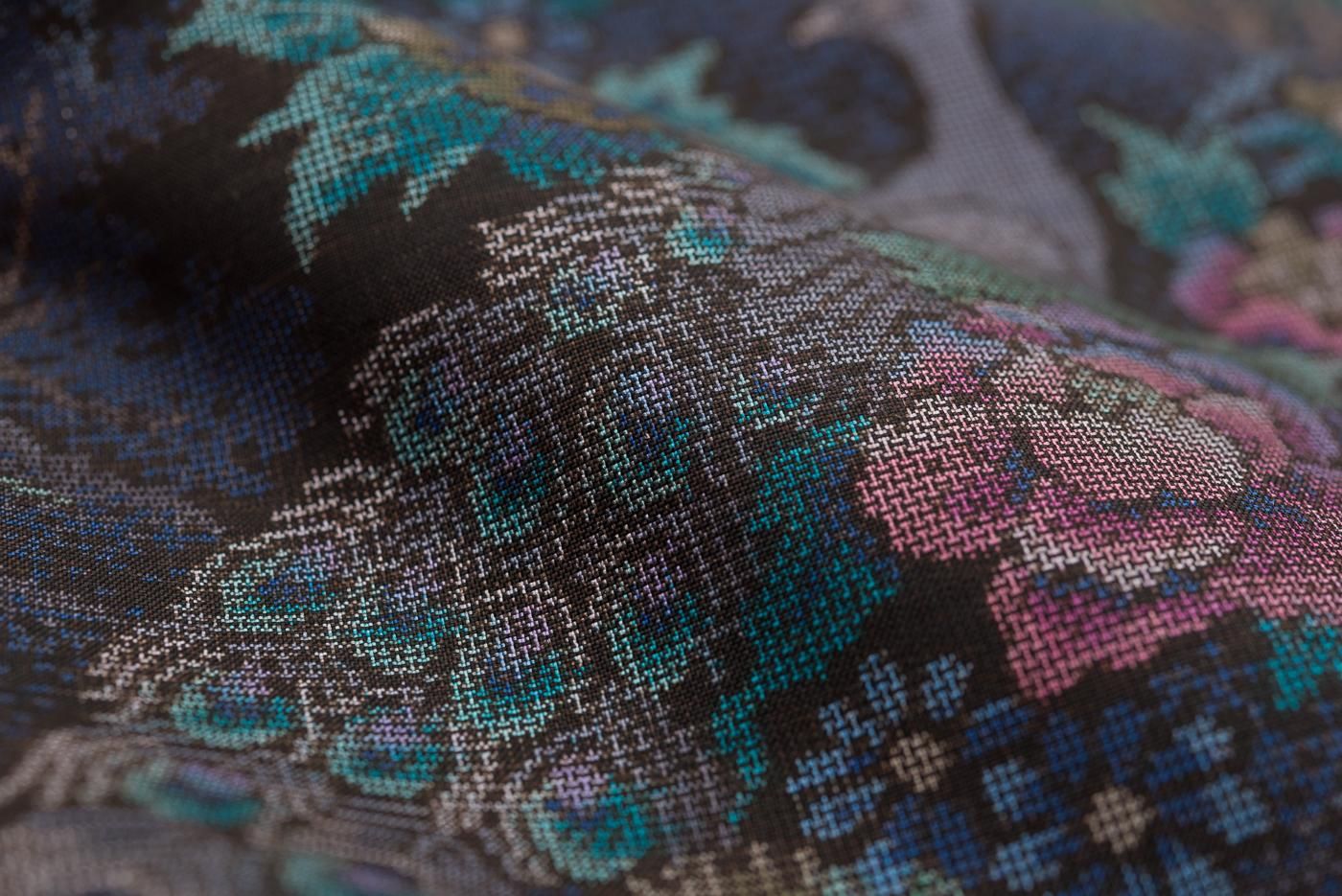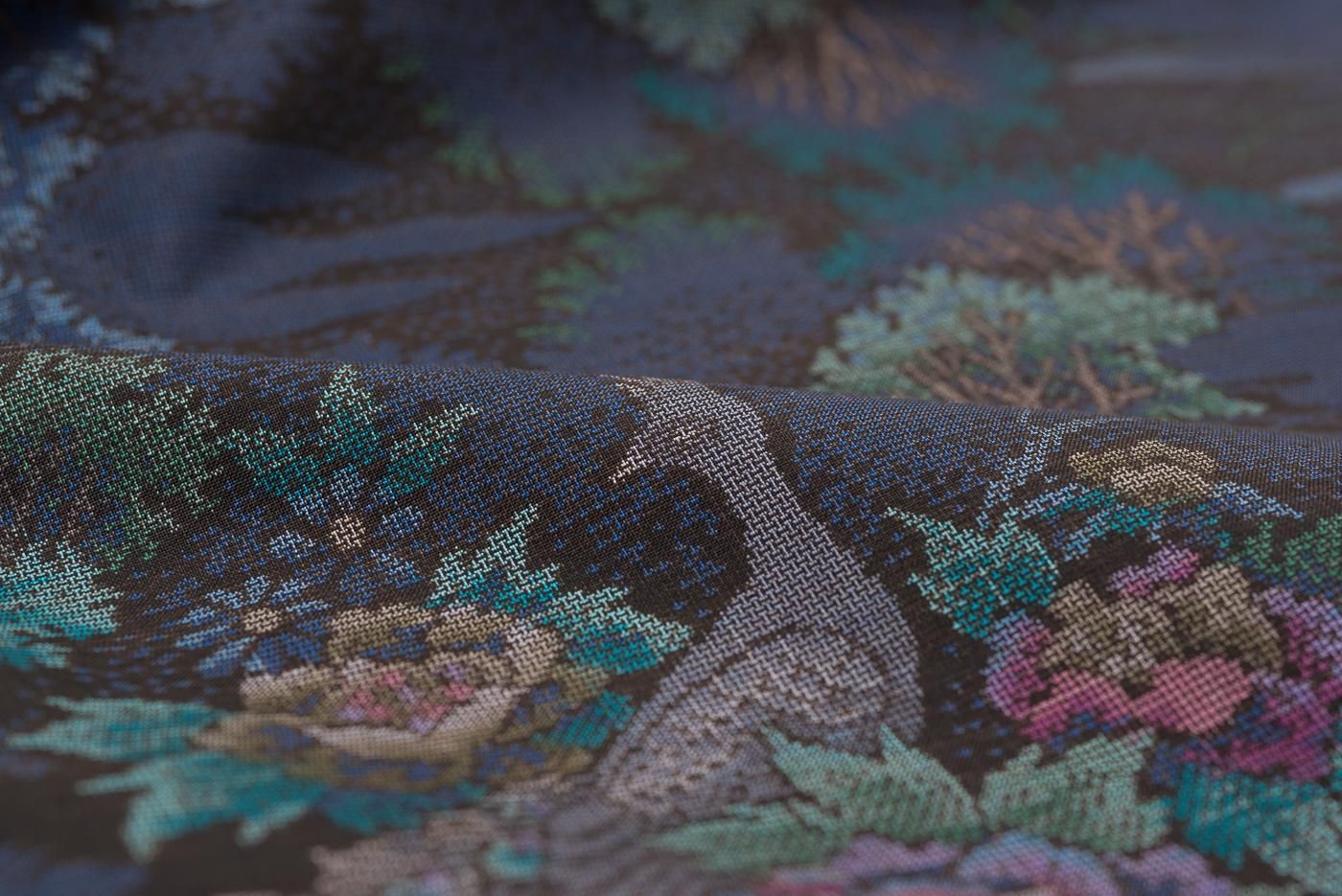 落ち着いた地色ゆえに柄の様々な色が際立って見える計算されたデザインですね。