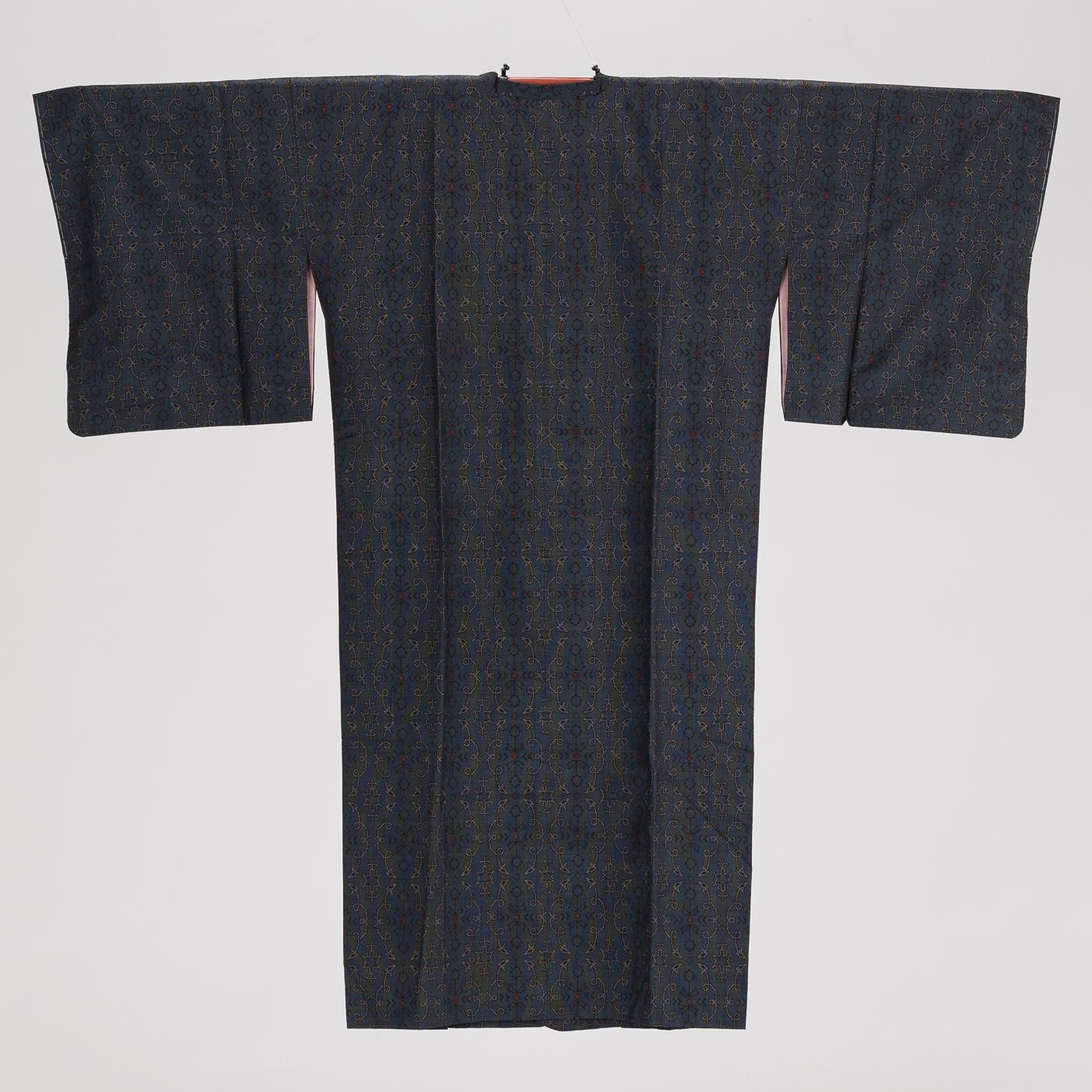 【売り切れ】 ロング道行コート 大島紬 幾何学柄 裄長