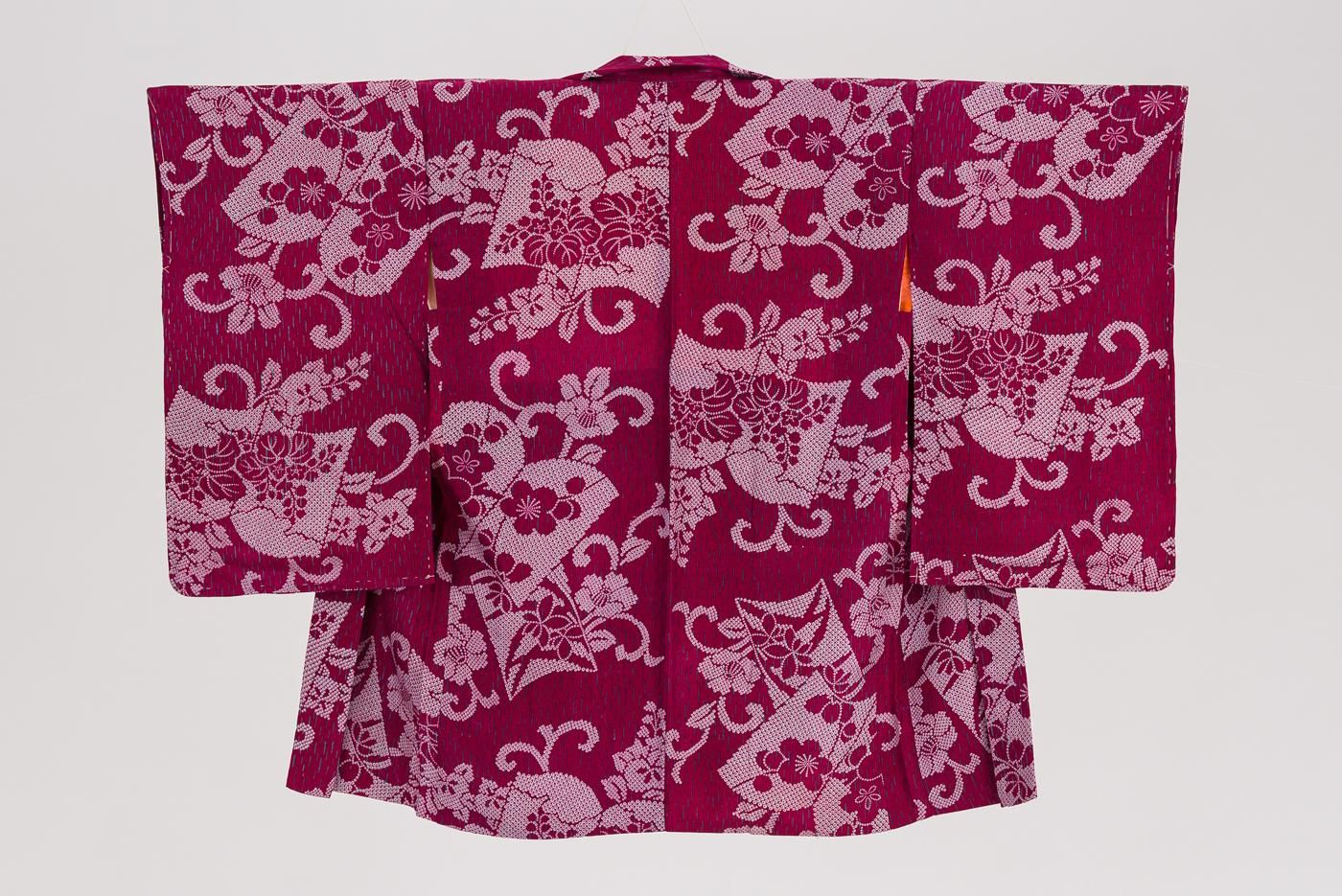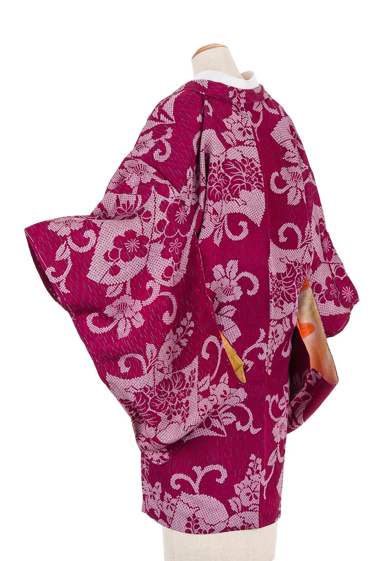 赤紫色の地に大きく読本柄を染めたアンティークの長羽織です。