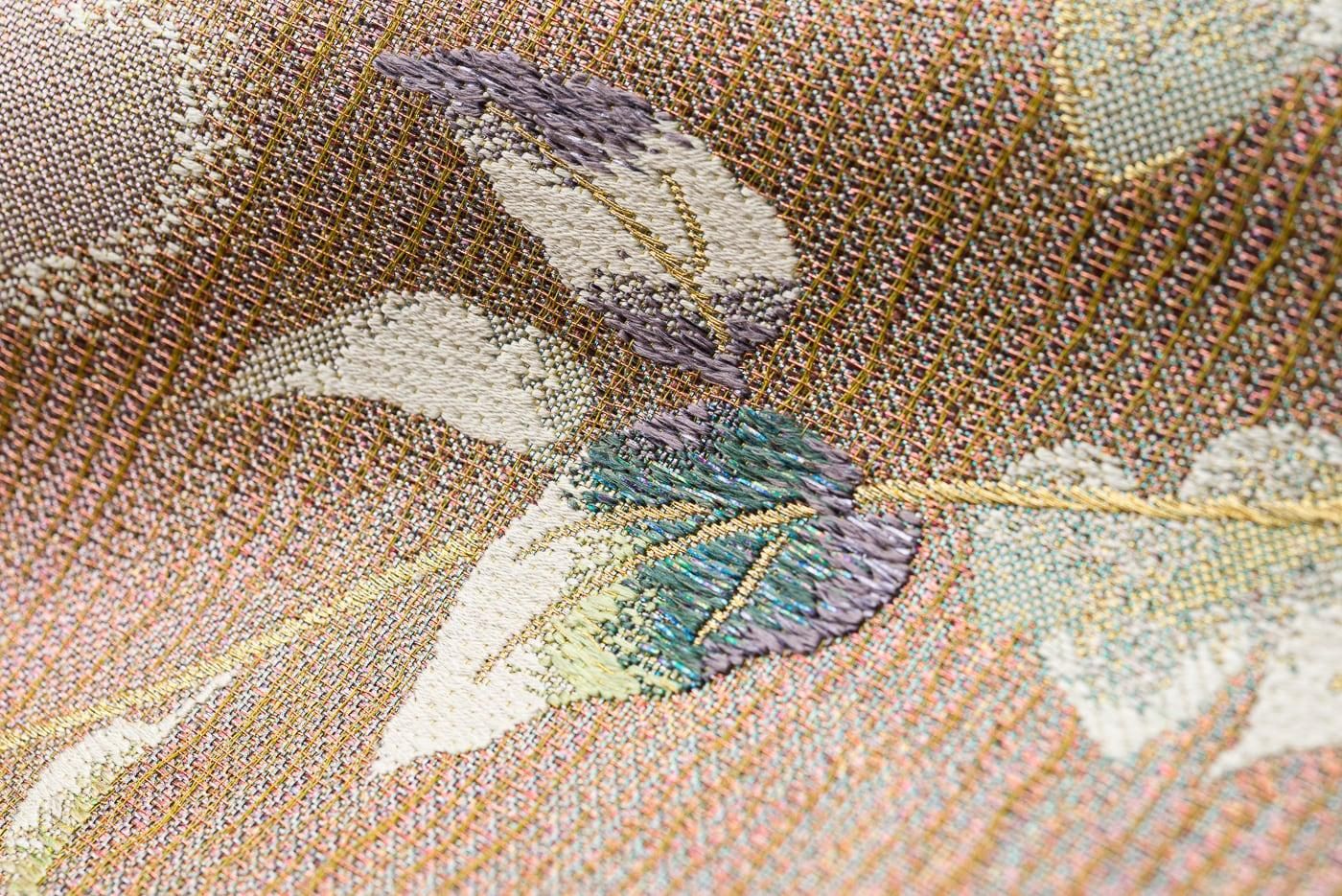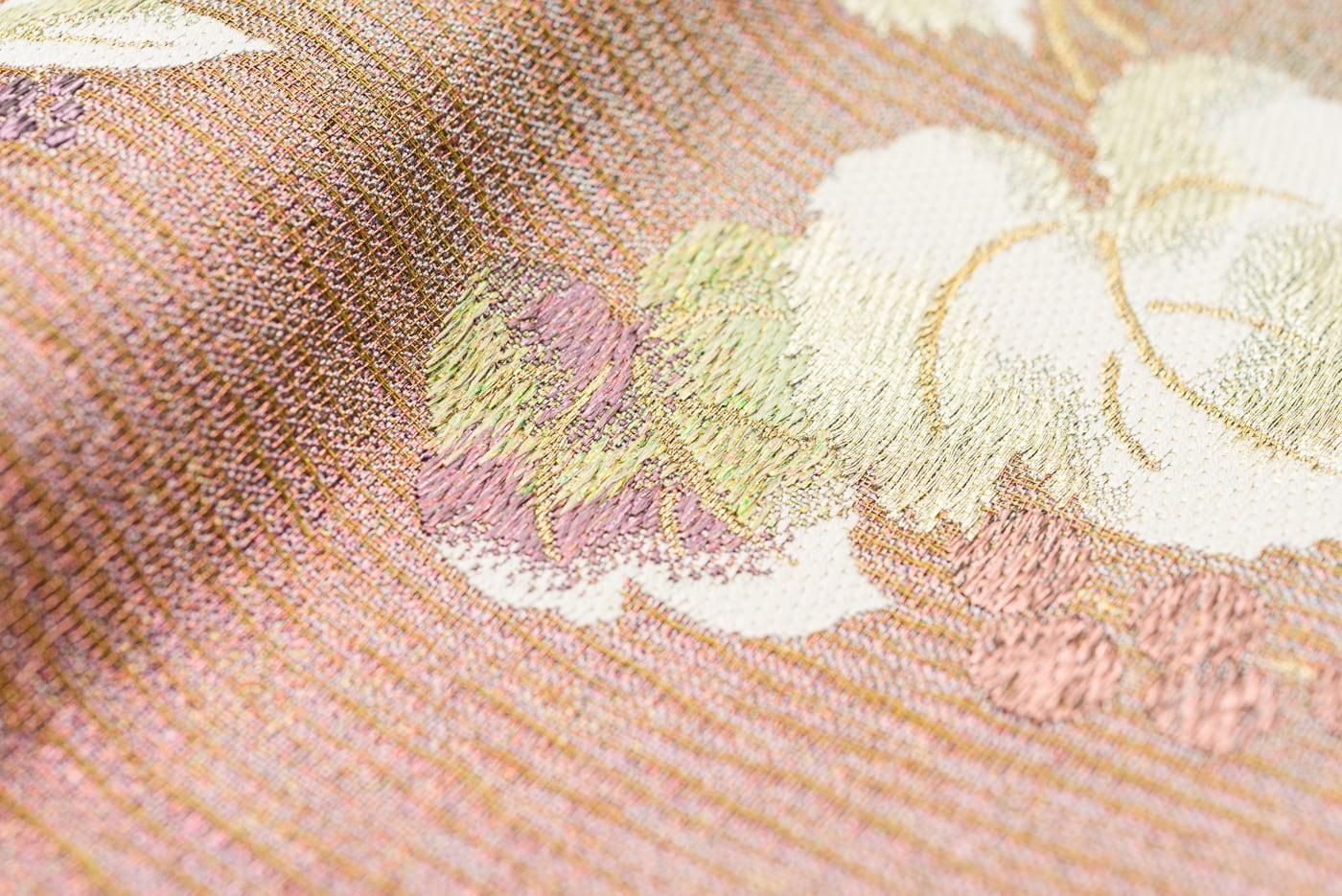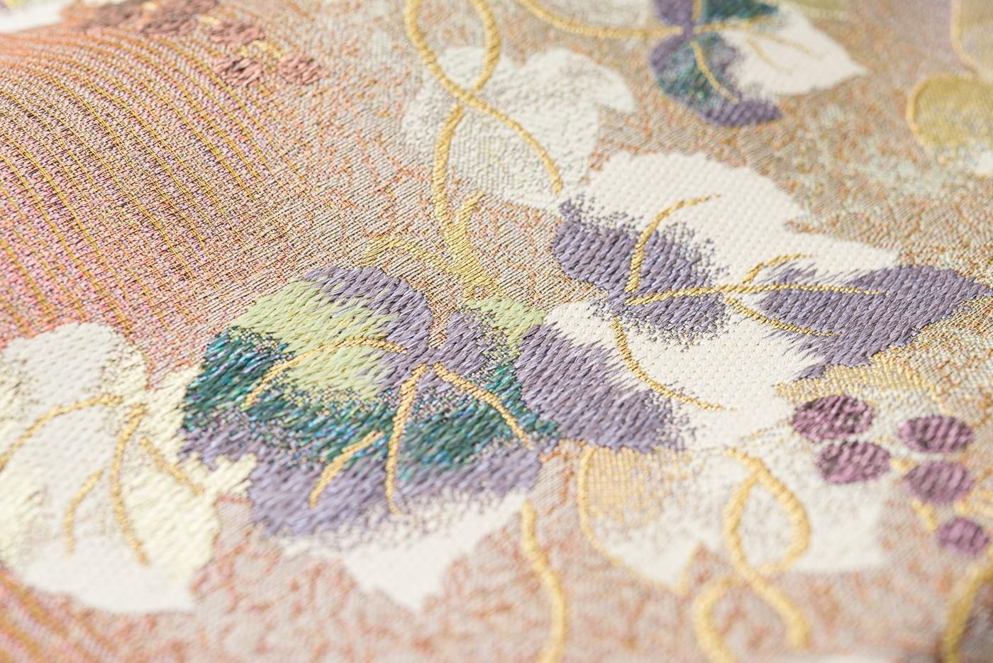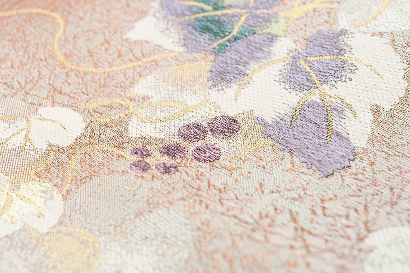 ゆったりと伸びる蔓や葉の緑のグラデーションなど、柔らかで優しい雰囲気がたっぷりの帯ですね。
