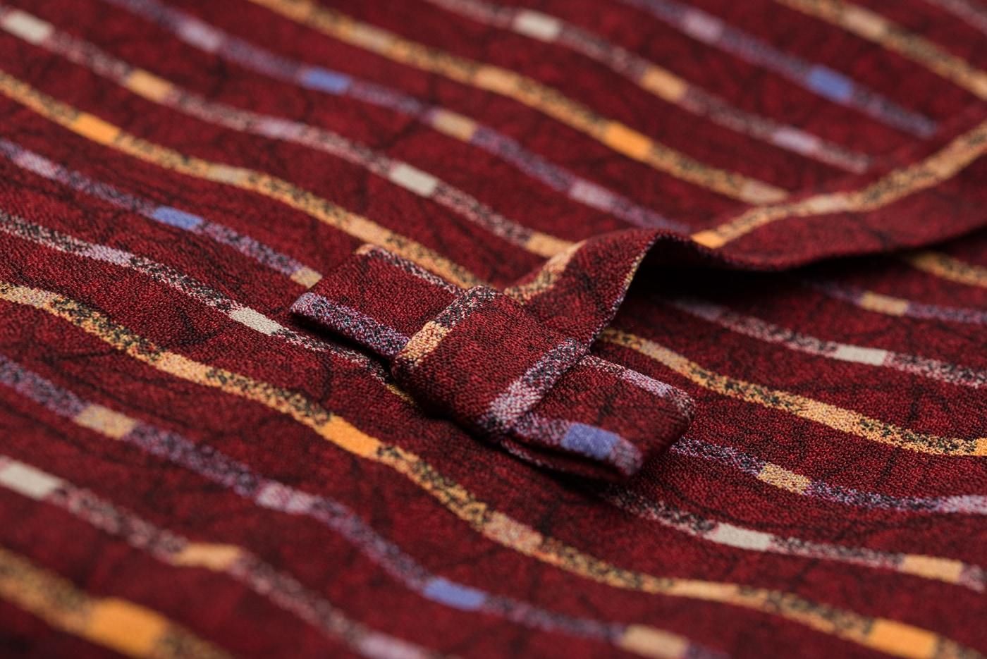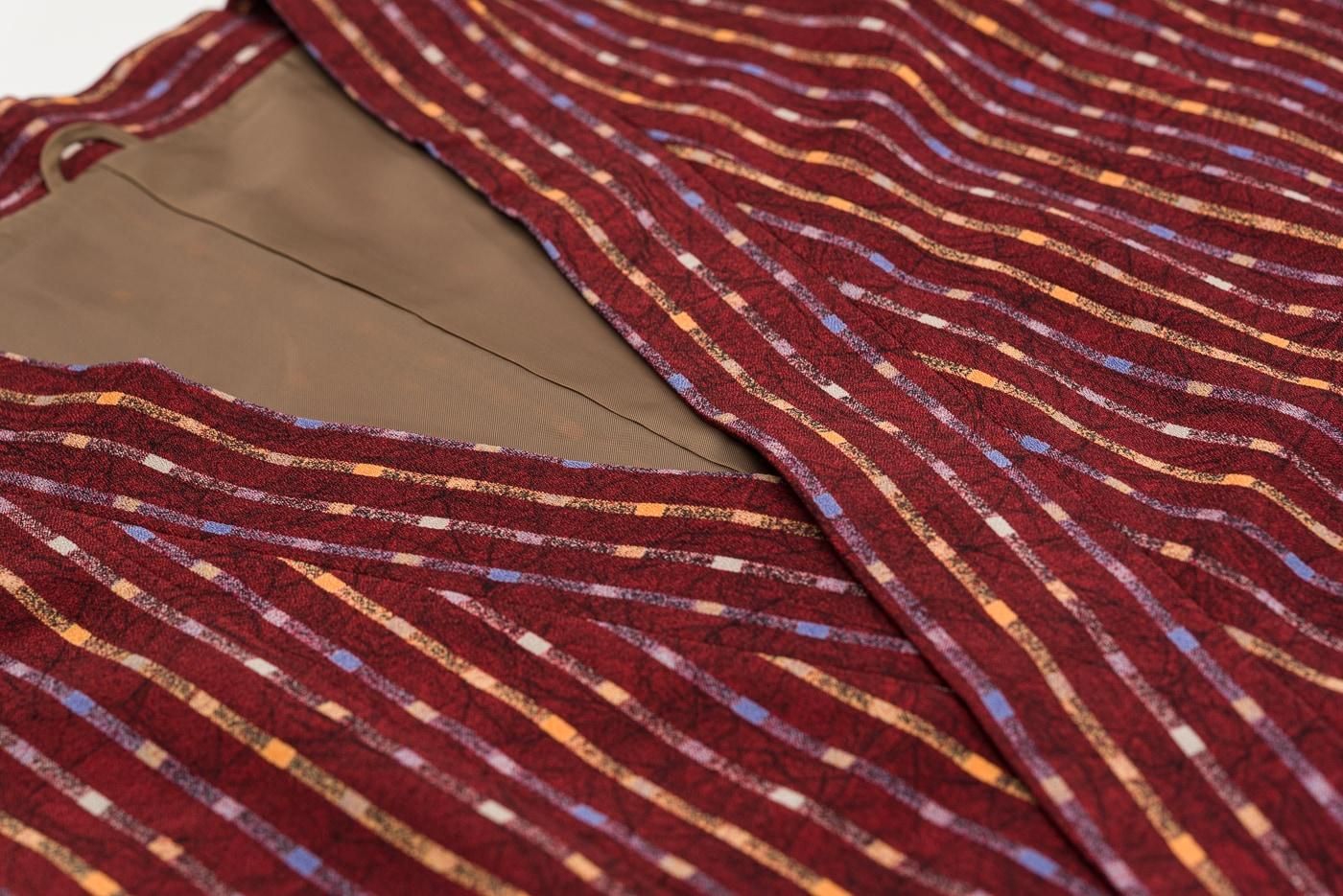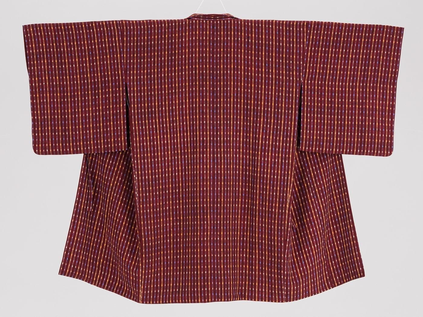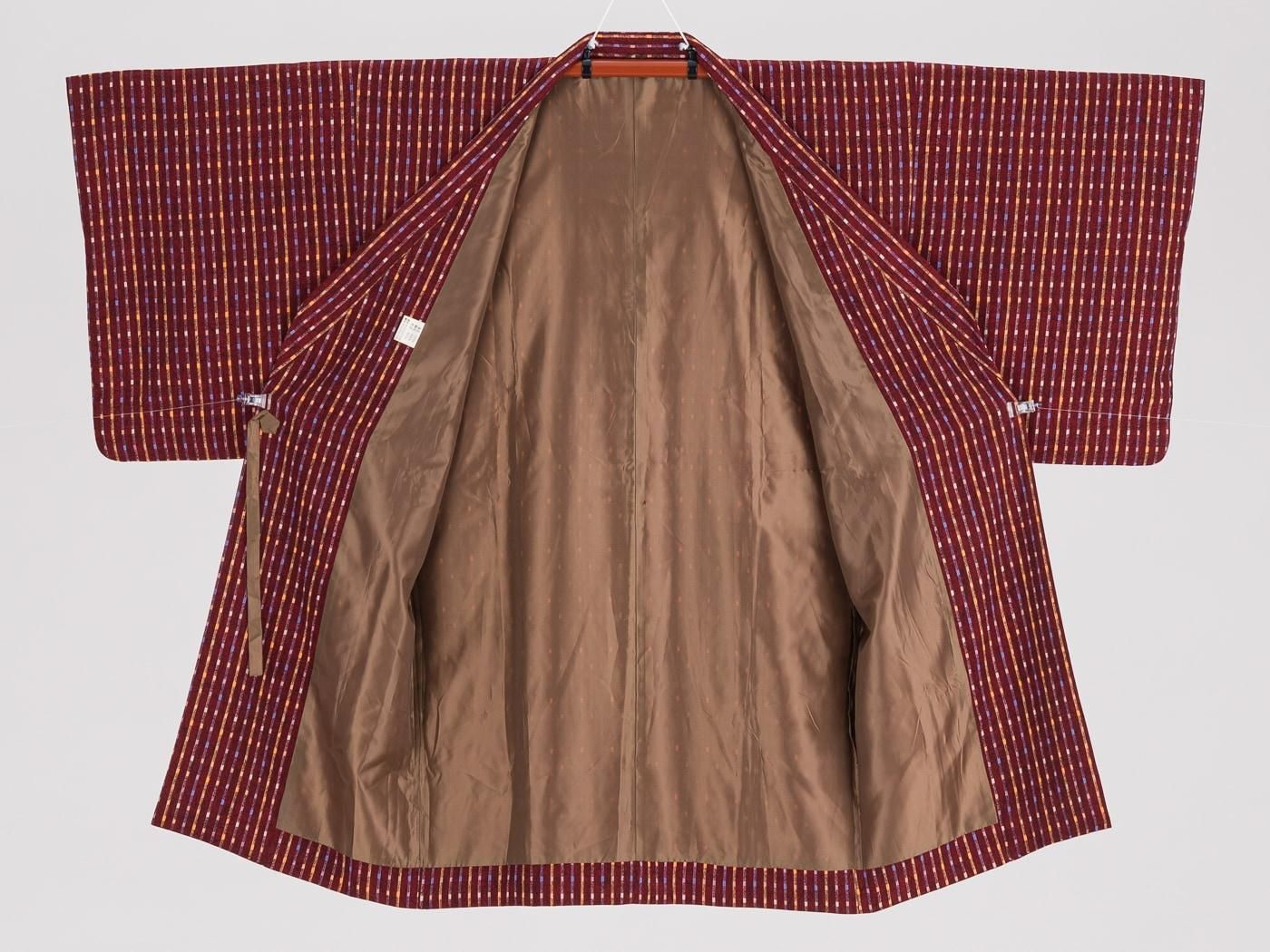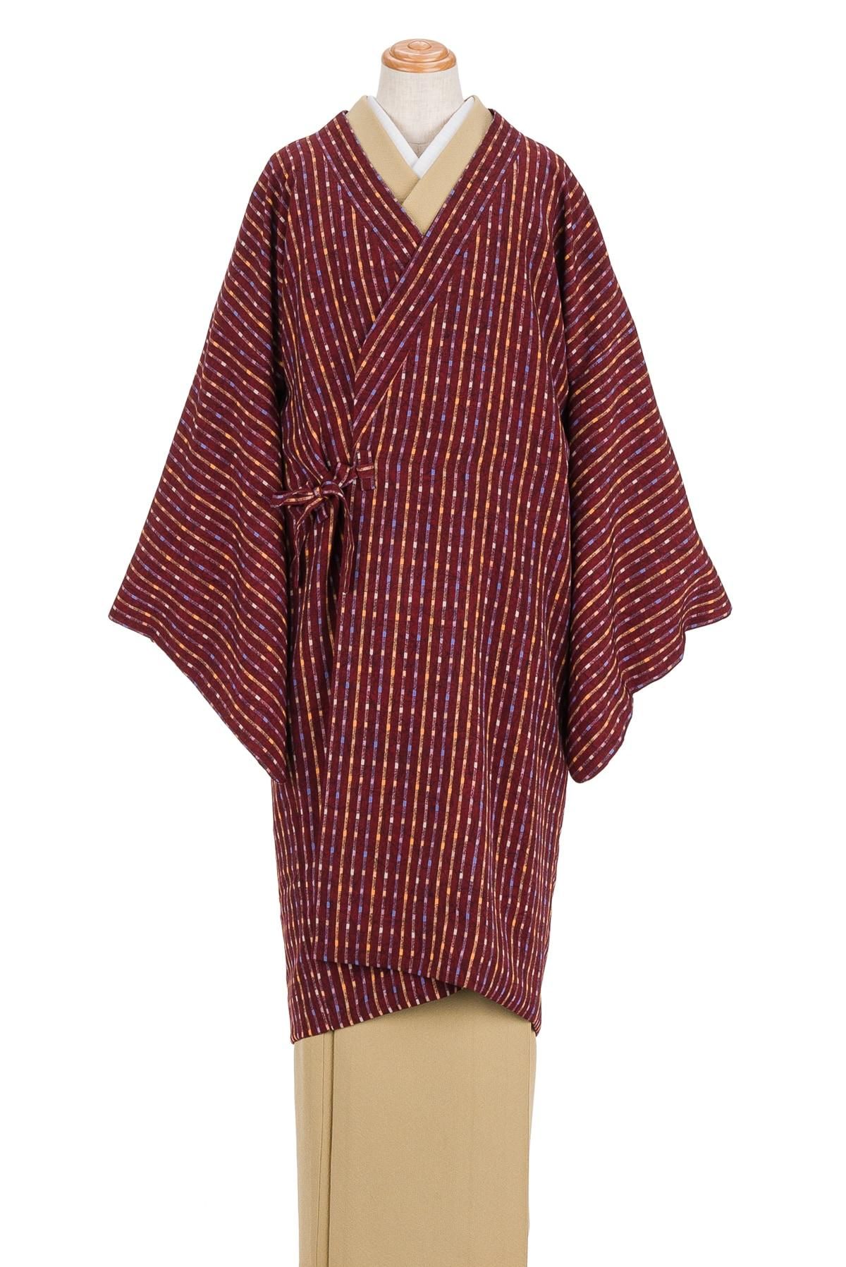 赤茶の地に縞模様を染めたロング丈の道中着です。