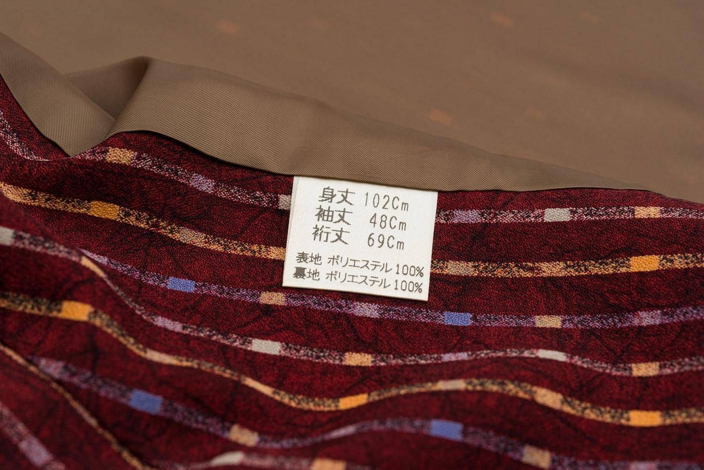 【売り切れ】 ロング道中着 赤茶に縞模様 ポリエステル 裄長