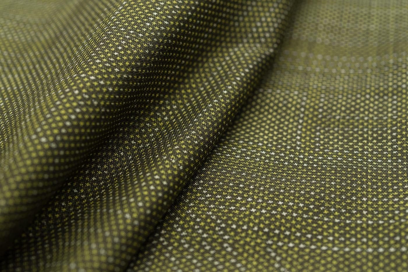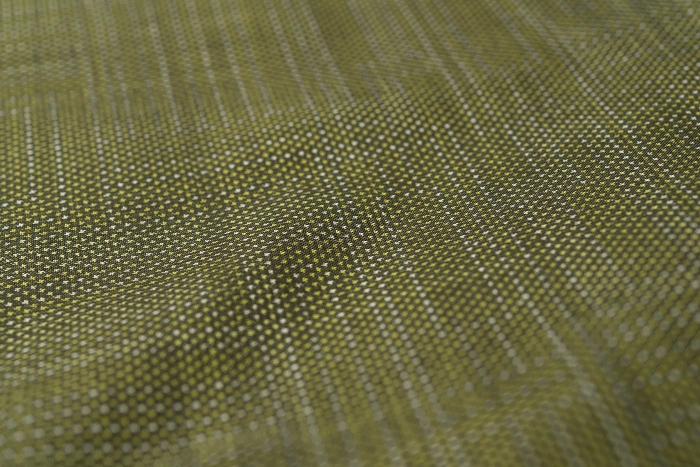 白や黄色の細かな絣柄を織り出した無地に近いデザインですので、帯や小物のコーディネートが色々楽しめそうです。