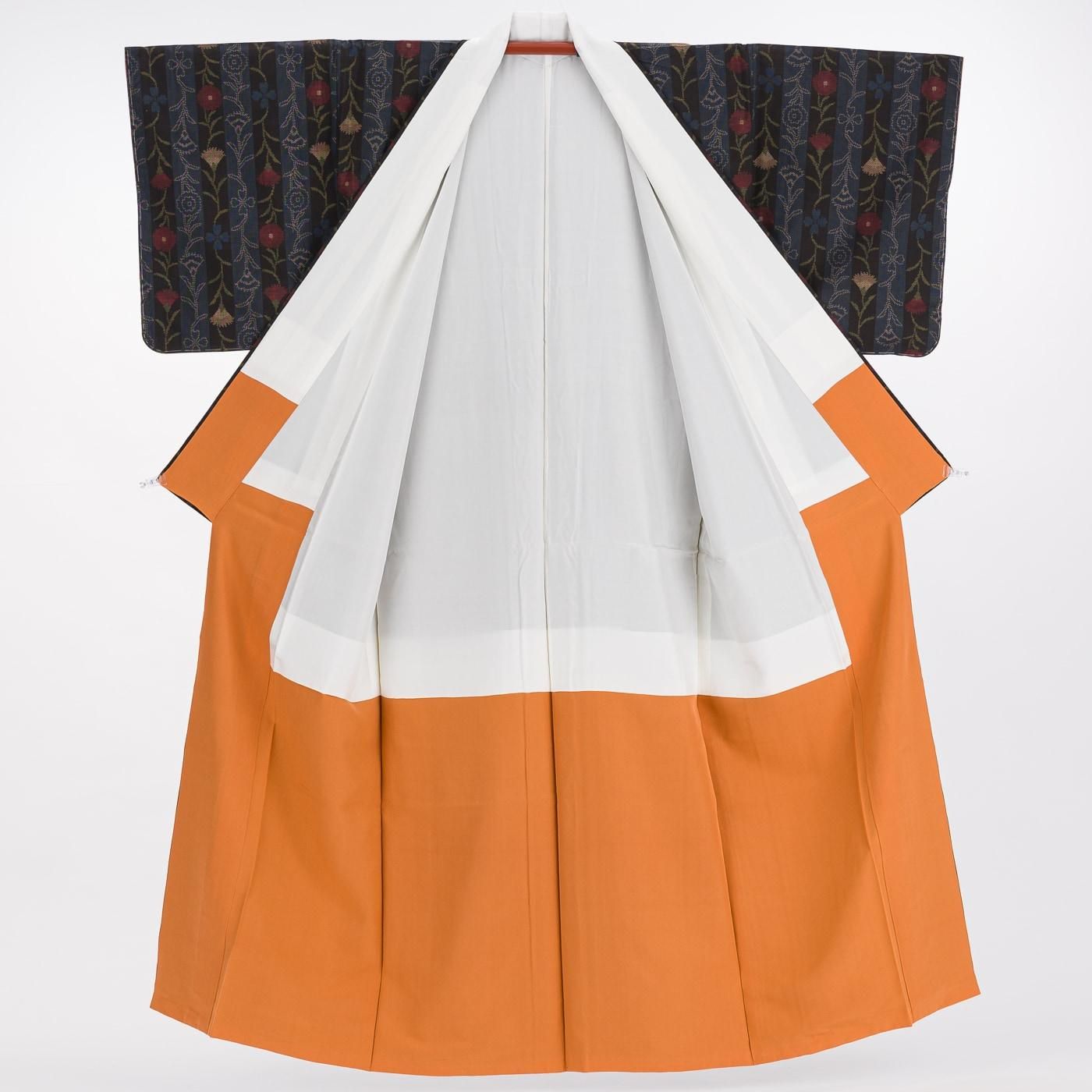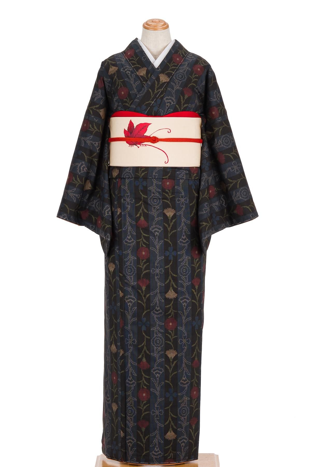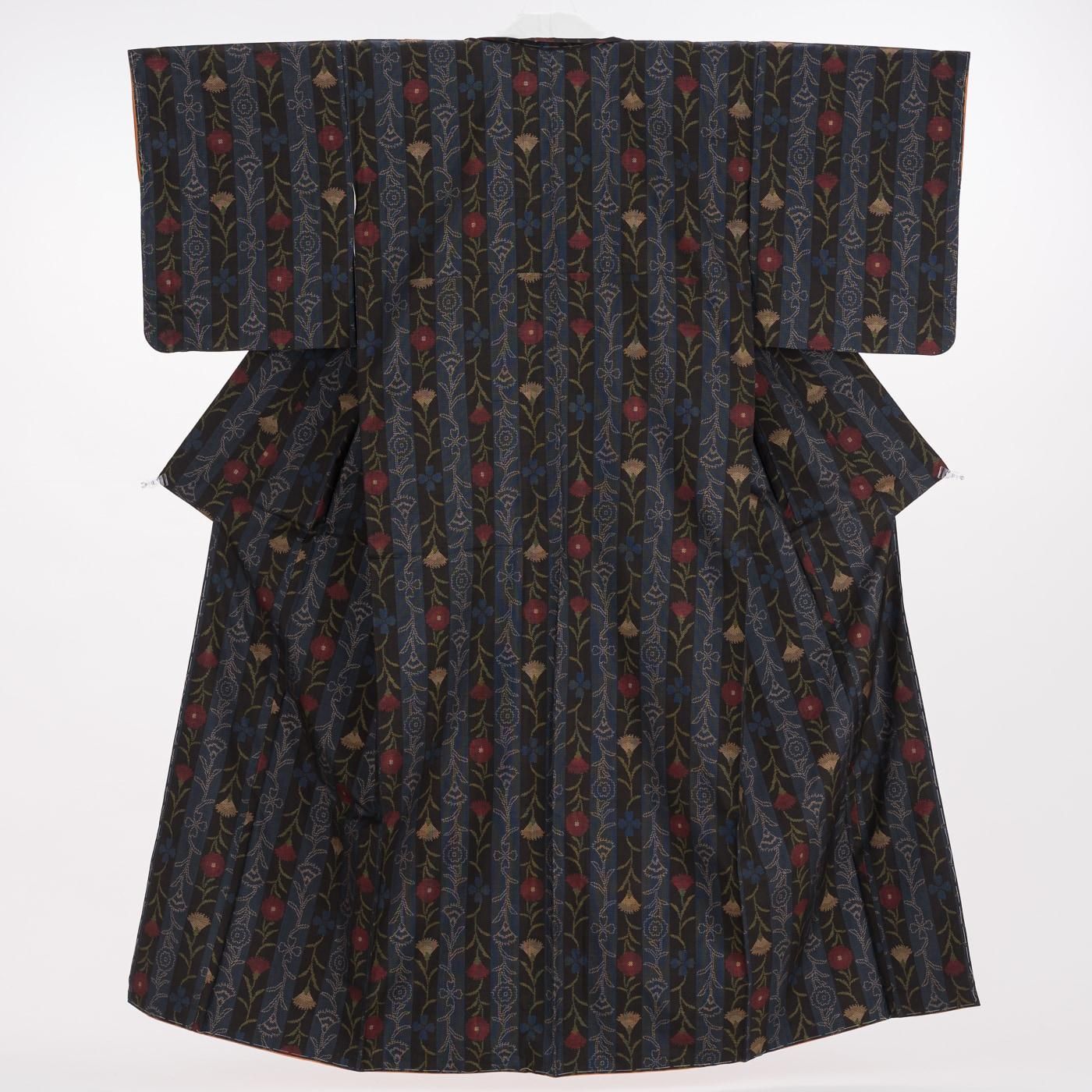 【売り切れ】 大島紬 縞に花模様 ゆったりサイズ