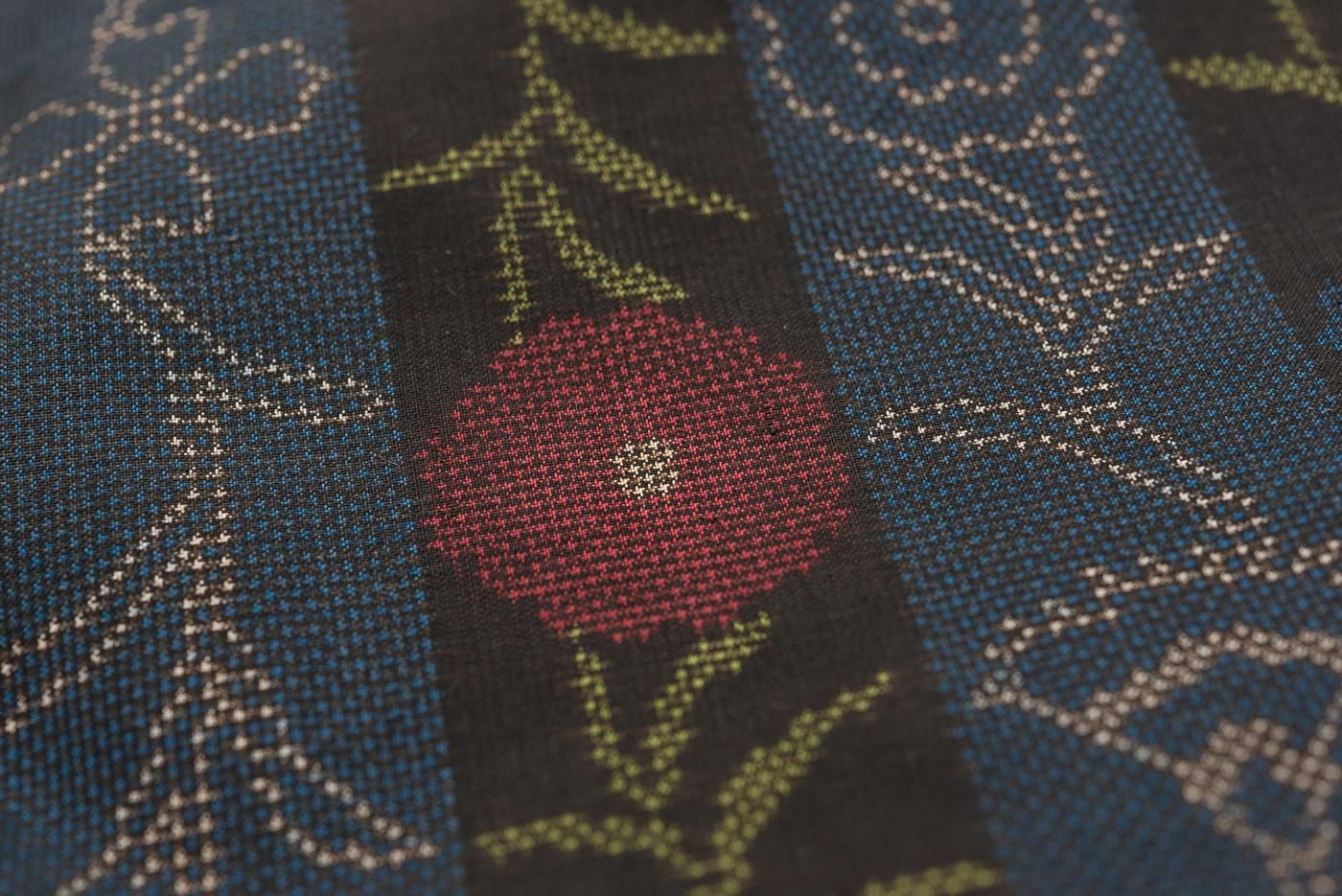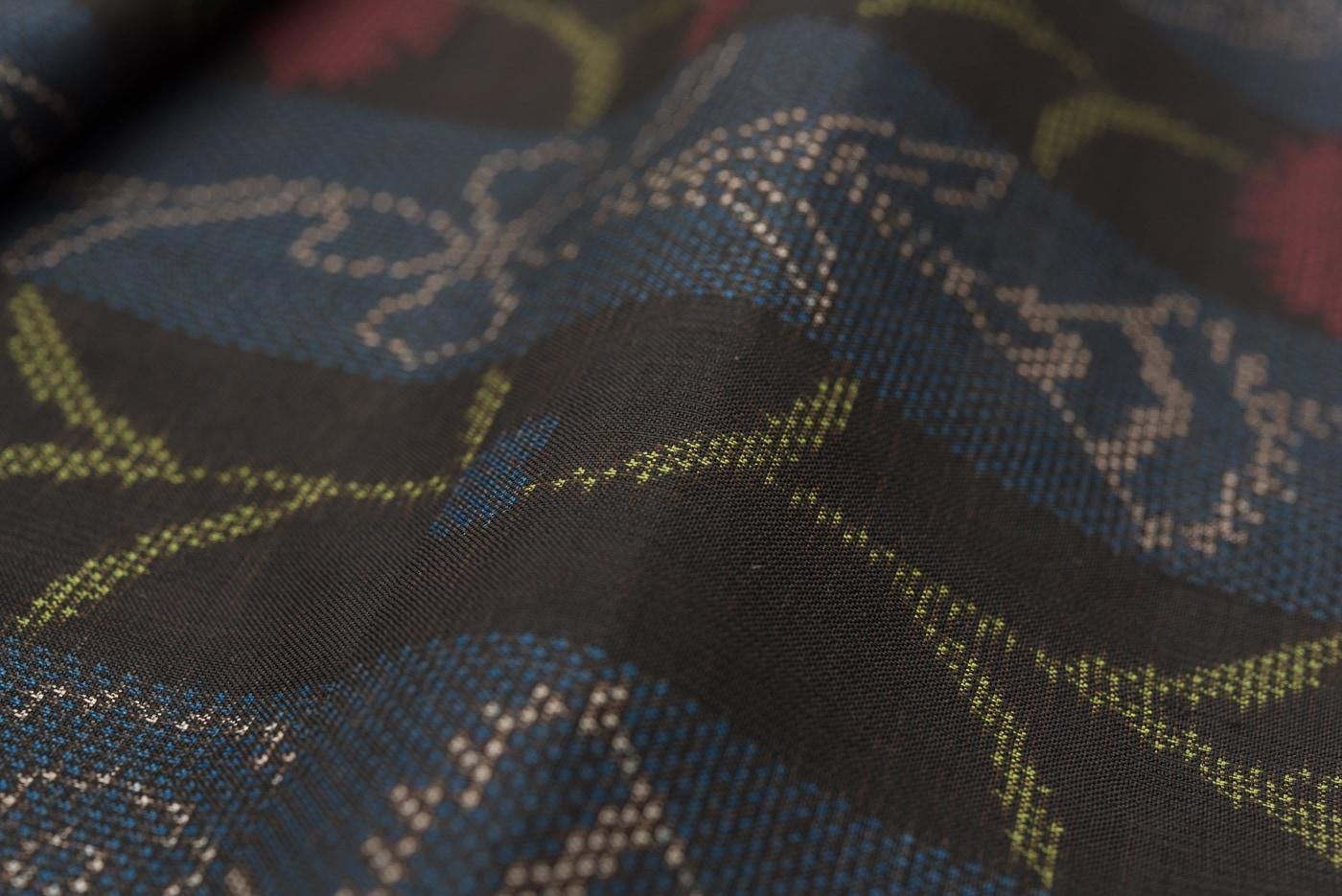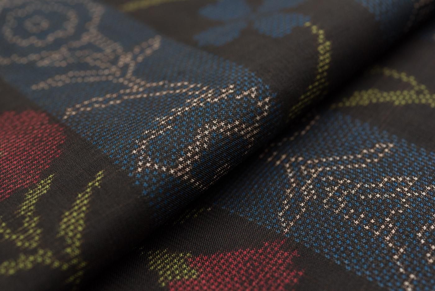 【売り切れ】 大島紬 縞に花模様 ゆったりサイズ