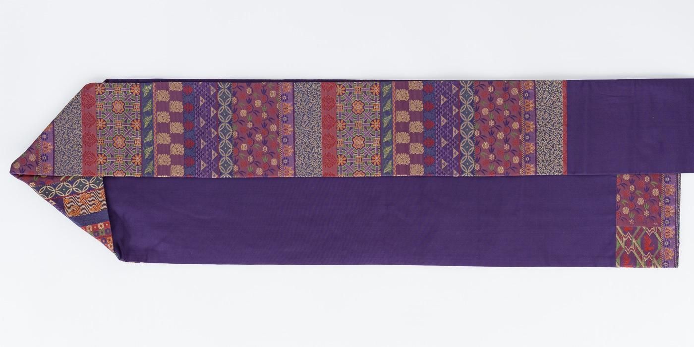 花兎、笹蔓、鱗、有栖川に荒磯など、様々な古典柄を織り出した九寸名古屋帯です。