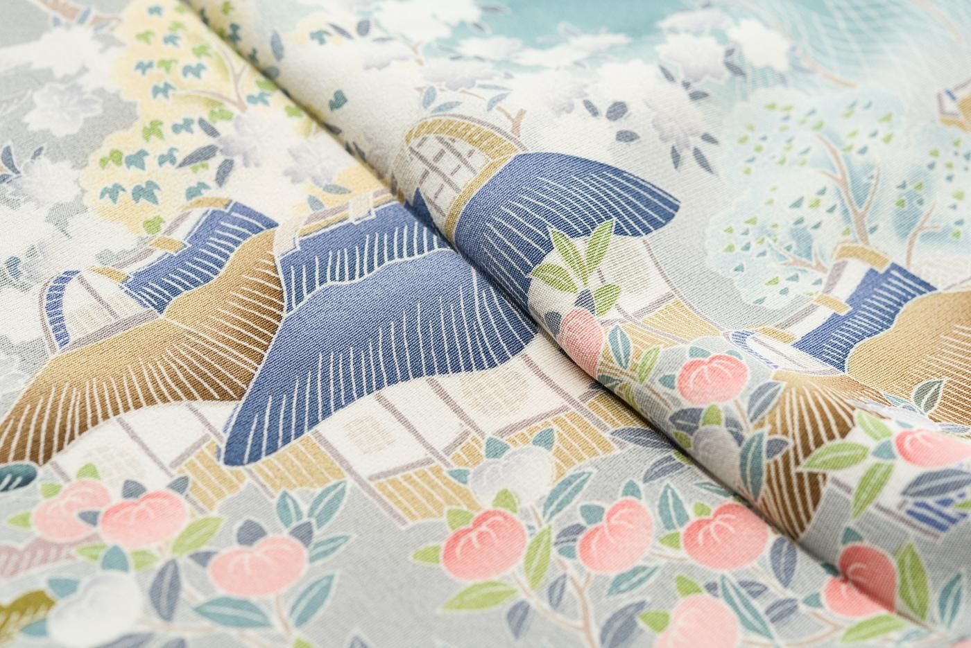 訪問着 青緑地 茶屋辻模様 裄長の商品写真